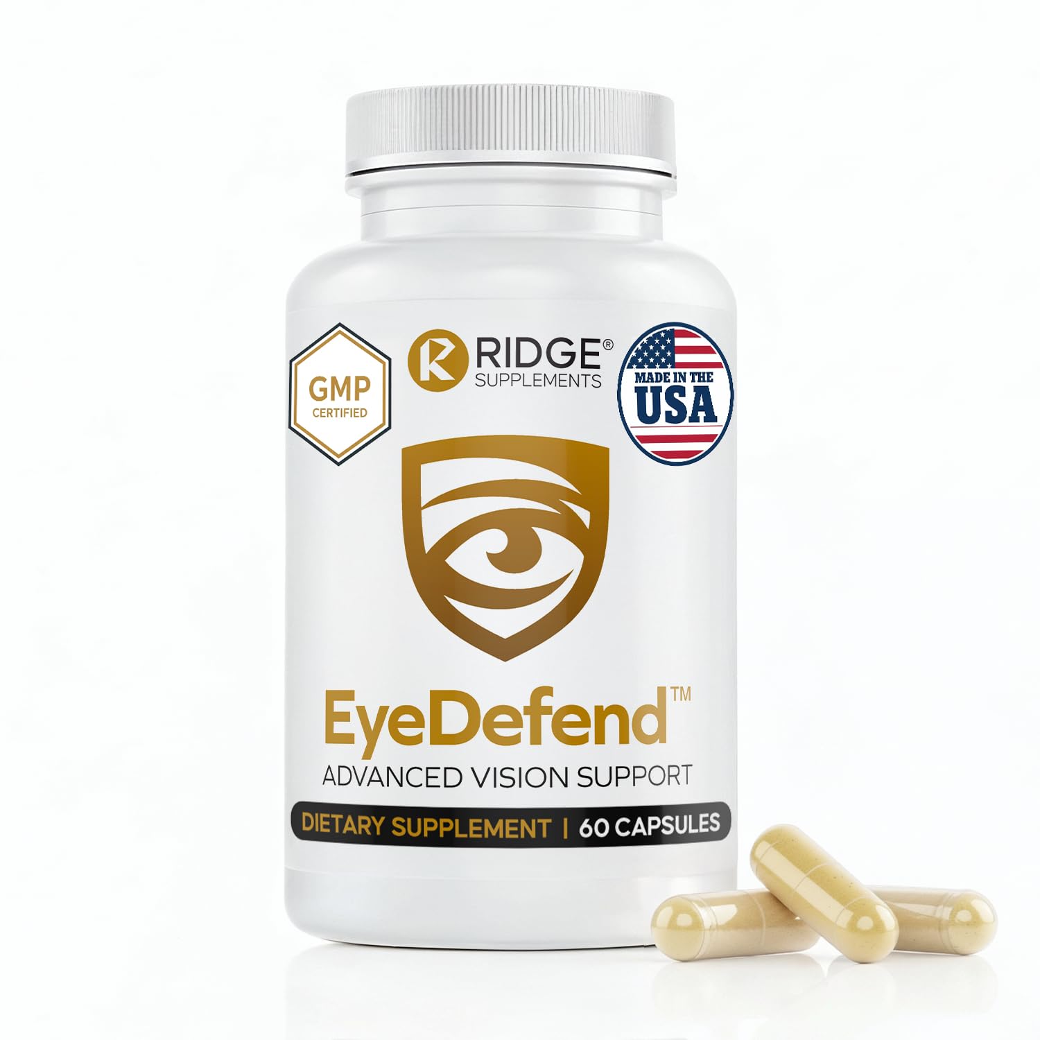 EyeDefend Vision Support Supplement Supports Overall Vision - Lutein Zeaxanthin Bilberry Vitamin A C E & Antioxidants Blue Light Defense for Eye Health & Visual Function 60 Capsules