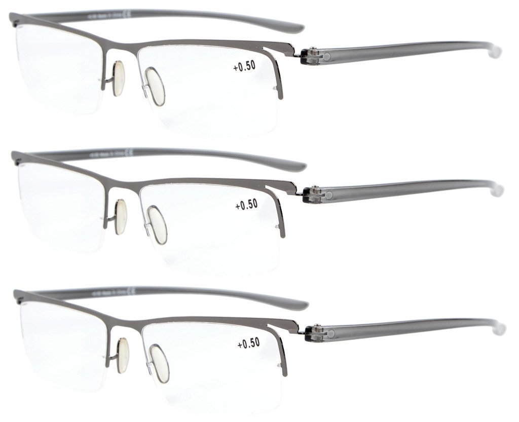 Eyekepper 3 Stuecke Plastik Buegel Leicht Halbrand Lesebrille Herren Damen Gunmetal +2.0