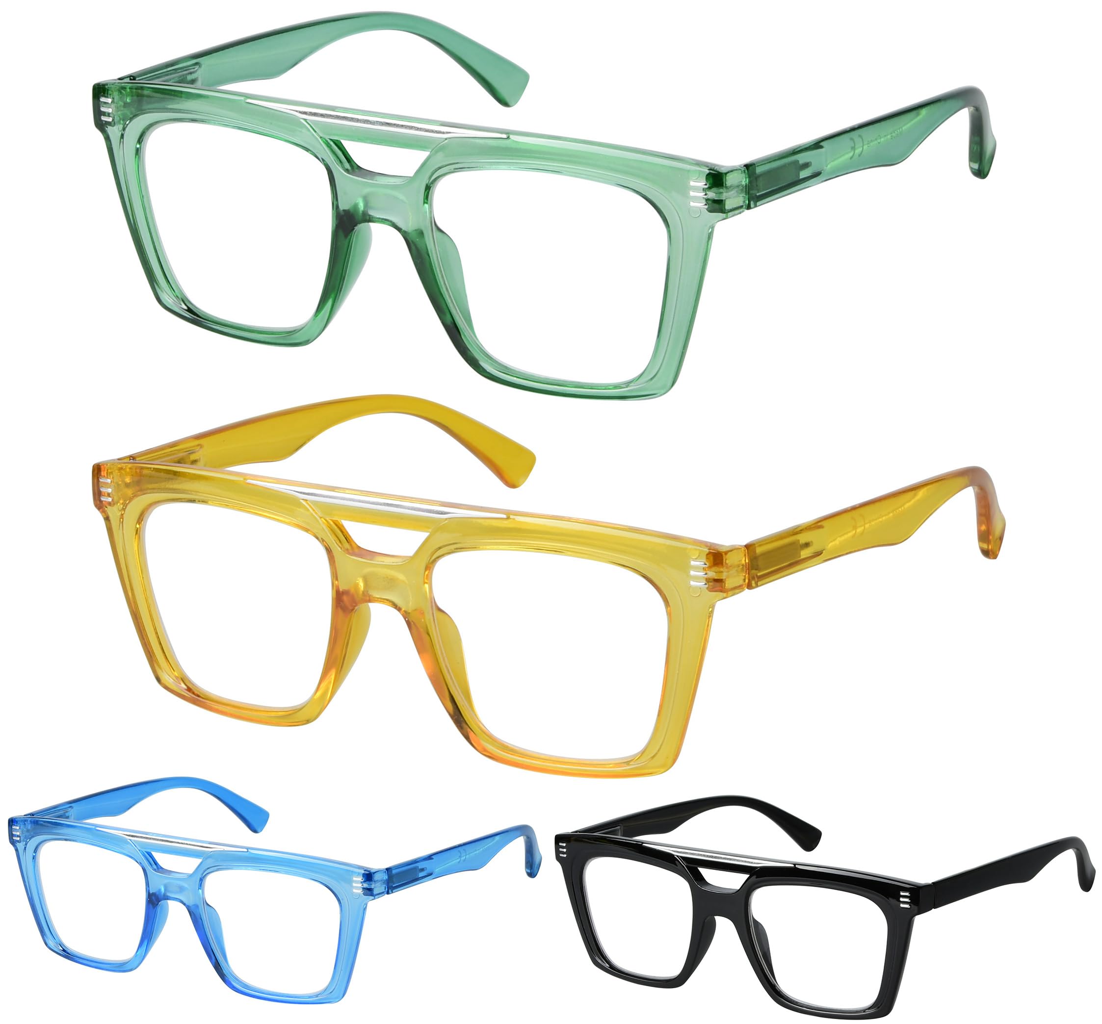 ?? If you are not completely satisfied our reading glasses, Please contact Eyekepper for a full refund. ?? This women’s square reading glasses use A-class Clear Lens/Scratch lenses which have higher precision as well ,scratch-resistant coating technology improves visual clarity and keeps lenses clear optimal viewing. ?? 4 pack specs for women come in 1 power of your choice, These are not mixed powers reading glasses. ?? Double bridge design and metal decoration would let you look younger and make you more elegant and charming, attract everyone's attention and to be a fashion icon. ?? Fashion square reading glasses with spring hinges, Frame height about 1 15/16 inches (49mm).