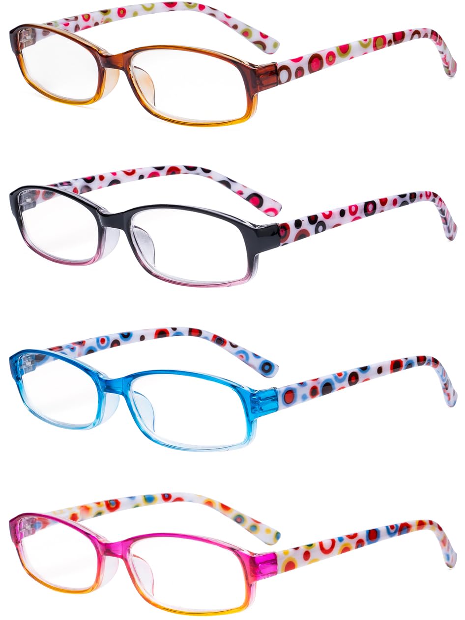 Eyekepper 4 Pack Ladies Reading Glasses - Cute Readers with Colorful Polka Dots Patterned Temple for Women Reading +2.50 +2.50 4 Pairs Mix