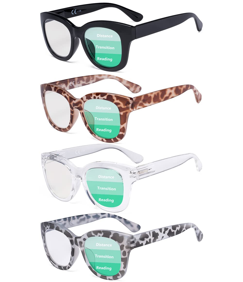 Eyekepper 4-Pack Oversized Progressive Multifocus Reading Glasses Women Blue Light Blocking Computer Readers No Line Trifocal Readers +1.25 Mix 1.25 x