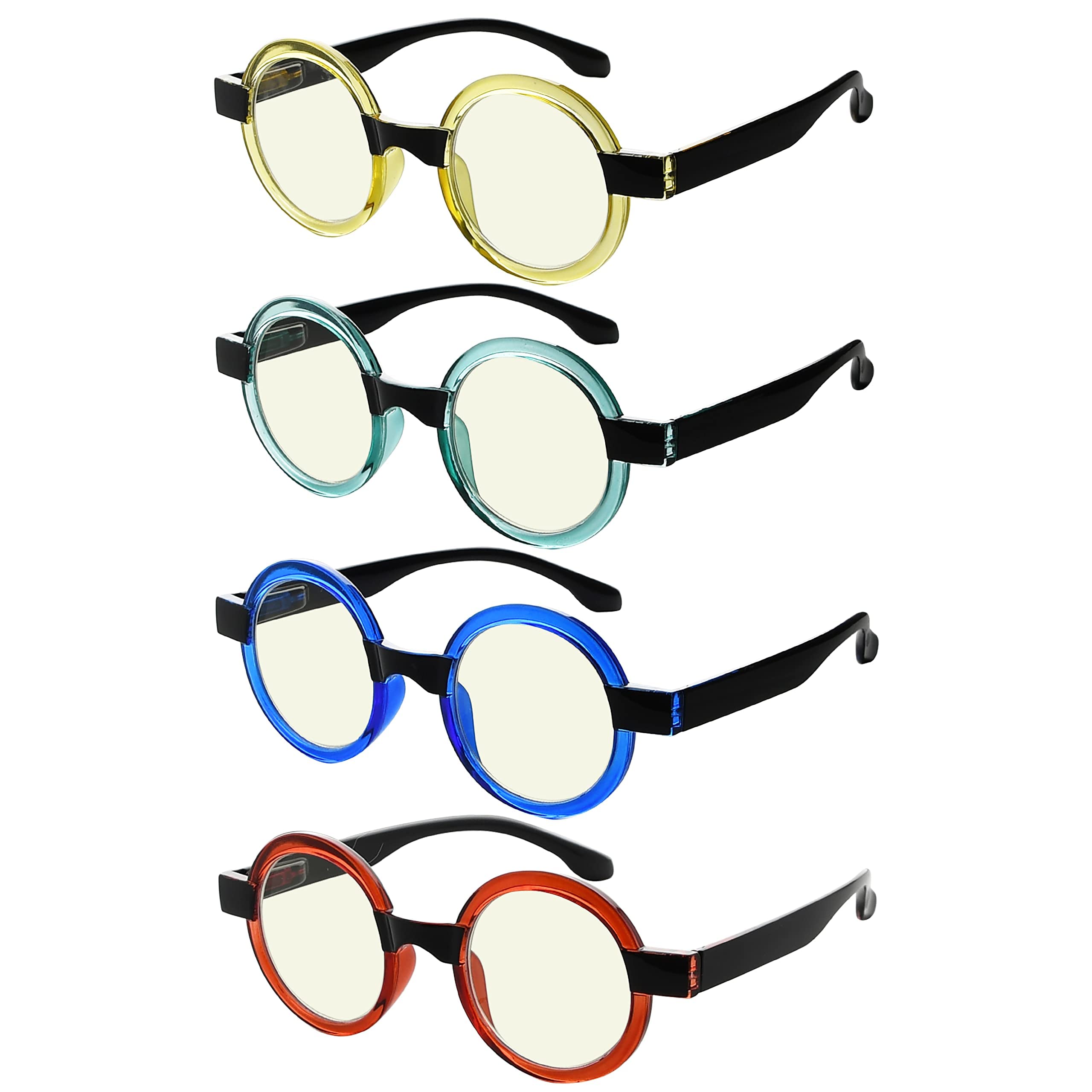 Eyekepper 4 Pack Reading Glasses Blue Light Blocking Round Computer Eyeglasses Women +0.00 C-blue Light Blocking-b40-4 Pairs 0.0 x