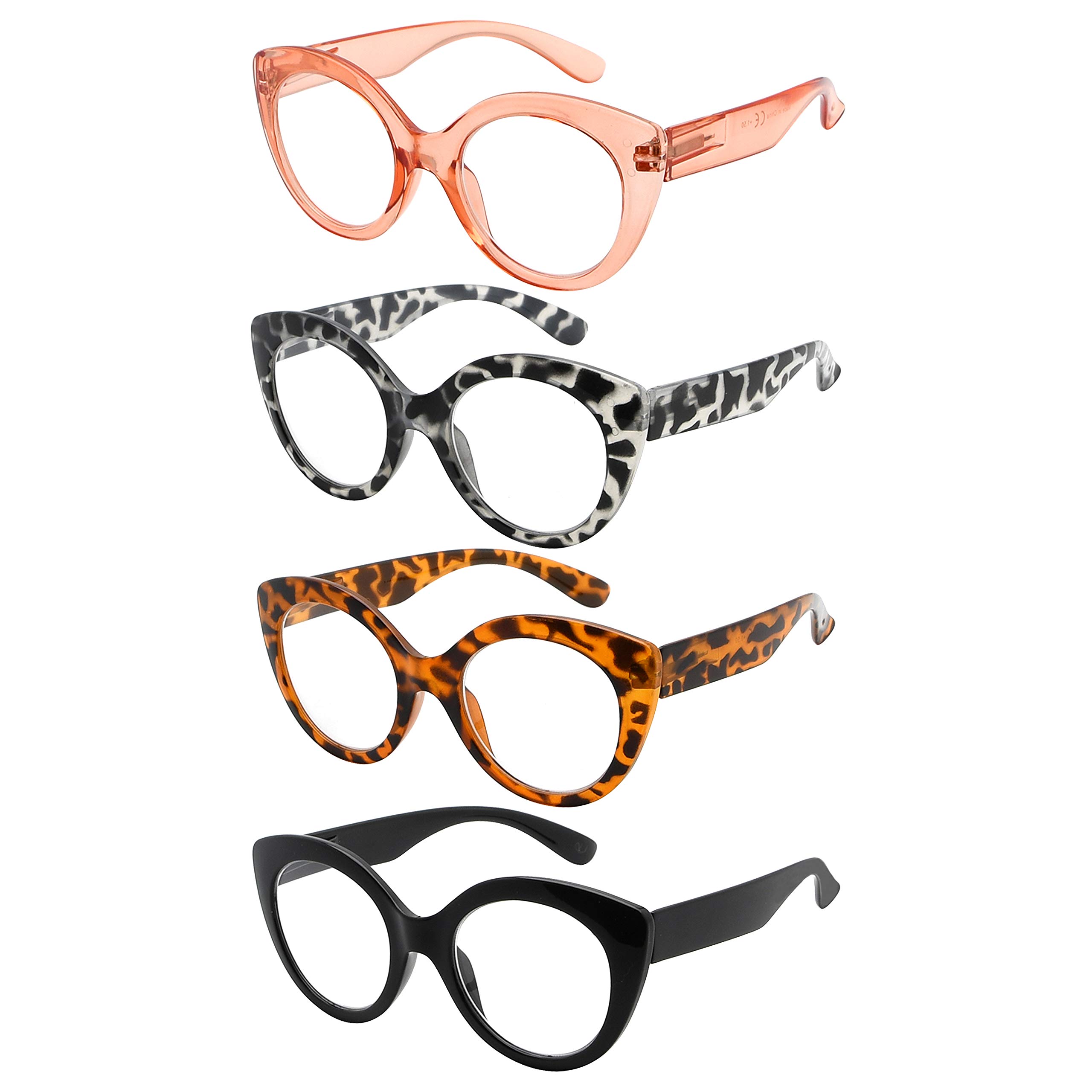 ?? If you are not completely satisfied our reading glasses, Please contact Eyekepper for a full refund. ?? This women’s reading glasses use A-class CLEAR LENS/SCRATCH lenses which have higher precision as well, scratch-resistant coating technology improves visual clarity and keeps lenses clear optimal viewing. ?? 4 pack large frame specs for women come in 1 power of your choice, these are not mixed powers reading glasses. ?? Women's readers with a fun and colorful design for a fresh look. Popular color design, suitable for most people readers, give you all day reading protect. ?? Round reading glasses with spring hinges, Frame height about 2.09 inches (53mm).
