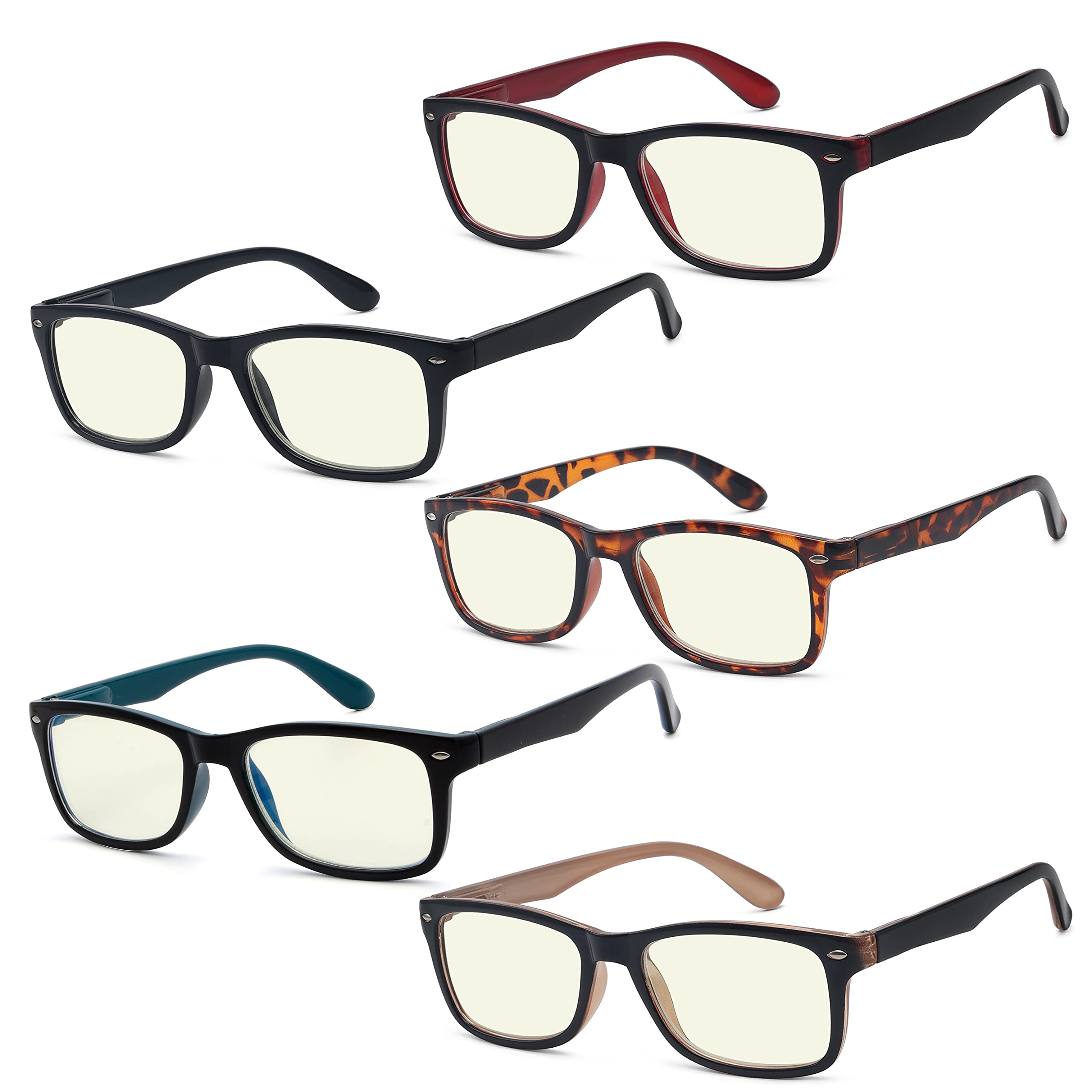 Eyekepper 5-Pack Computer Glasses UV Protection Anti Glare Anti-Reflective Computer Eyeglasses (All with Yellow Tinted Lenses)+1.75 +1.75 Blue Light Blocking Reading Glasses