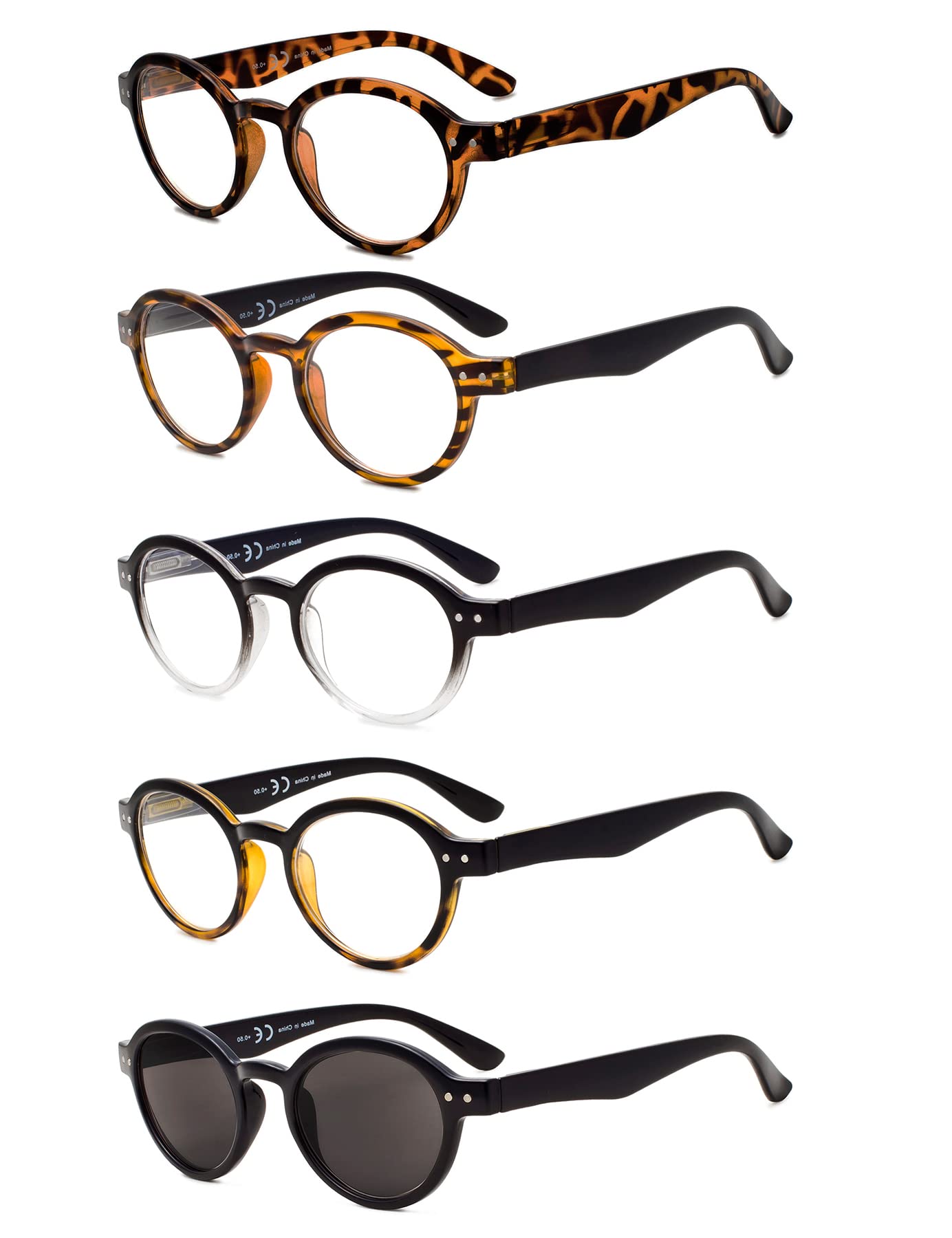 No risk of trying - if there is a quality problem with reading glasses, please do not hesitate to contact the eye -time customer service to solve the problem until you are satisfied.Eyekeper high -quality reading aid - the frame is comfortable to wear and the light permeability of the glasses is very good. Perfect gift for your friends, parents, grandparents and relatives.Technology improves visual clarity and keeps lenses clearly optimal.Eyekeper reading glasses- acrylic objective and optically flawless.Classically shaped frames are easy on every face.Flex Temple, help glasses fit your face. Highly contrasting colors.Eyekeper slightly oversized reading glasses - the pupil dance (PD) is 59-63 mm, the deviation for the pupil dance (PD) less than 2 mm, the deviation for the strength less than 0.02, the deviation for the horizontal line of the lenses less than1 mm.Dimensions of the products - frame material: plastic, glass width: 1 8 9 ""(48 mm), frame width: 5 5 16"" (135mm), glass height: 1 9 16 ""(40 mm), bridge (DBL): 2 3 ""(17 mm), ironing length: 5 5 16"" (135mm), spring hinge: yes, lens: aspherical, head size: medium -sized to wider.KEIN RISIKO BEIM VERSUCH - Wenn es ein Qualitätsproblem mit der Lesebrille gibt, zögern Sie bitte nicht, den Eyekepper Kundenbetreuung zu kontaktieren, um das Problem zu lösen, bis Sie zufrieden sind. EYEKEPPER HOCHWERTIGER LESEHILFE - Der Rahmen ist angenehm zu tragen und die Lichtdurchlässigkeit der Gläser ist sehr gut.Perfektes Geschenk für Ihre Freunde, Eltern, Großeltern und Verwandten. Technologie verbessert die visuelle Klarheit und hält Linsen klar optimale Sicht. EYEKEPPER LESEBRILLE- Acrylic Objektiv und optisch einwandfrei. Klassisch geformte Rahmen läßt sich auf jedem Gesicht gut. Flex Tempel, passen Hilfe Gläser Ihre face.High kontrastierenden Farben. EYEKEPPER LEICHT ÜBERGROSSE LESEBRILLE - Die Pupillendistanz (PD) beträgt 59-63 mm, die Abweichung für die Pupillendistanz (PD) weniger als 2 mm, die Abweichung für die Stärke weniger als 0,02, die Abweichung für die horizontale Linie der Linsen weniger als 1 mm. ABMESSUNGEN DER PRODUKTE - Rahmenmaterial : Kunststoff, Gläserbreite : 1 8 9""(48 mm), Rahmenbreite : 5 5 16"" (135mm), Glashöhe : 1 9 16""(40 mm), Brücke (DBL): 2 3""(17 mm), Bügellänge : 5 5 16"" (135mm), Federscharnier : Ja, Linse: asphärische, Kopfgröße : Mittelgroßer bis breiter.Eyekepper 5-Pack Federscharniere Runde Retro Lesebrille Inklusive Sonnenbrillen 1.50 5 Stueck Mix