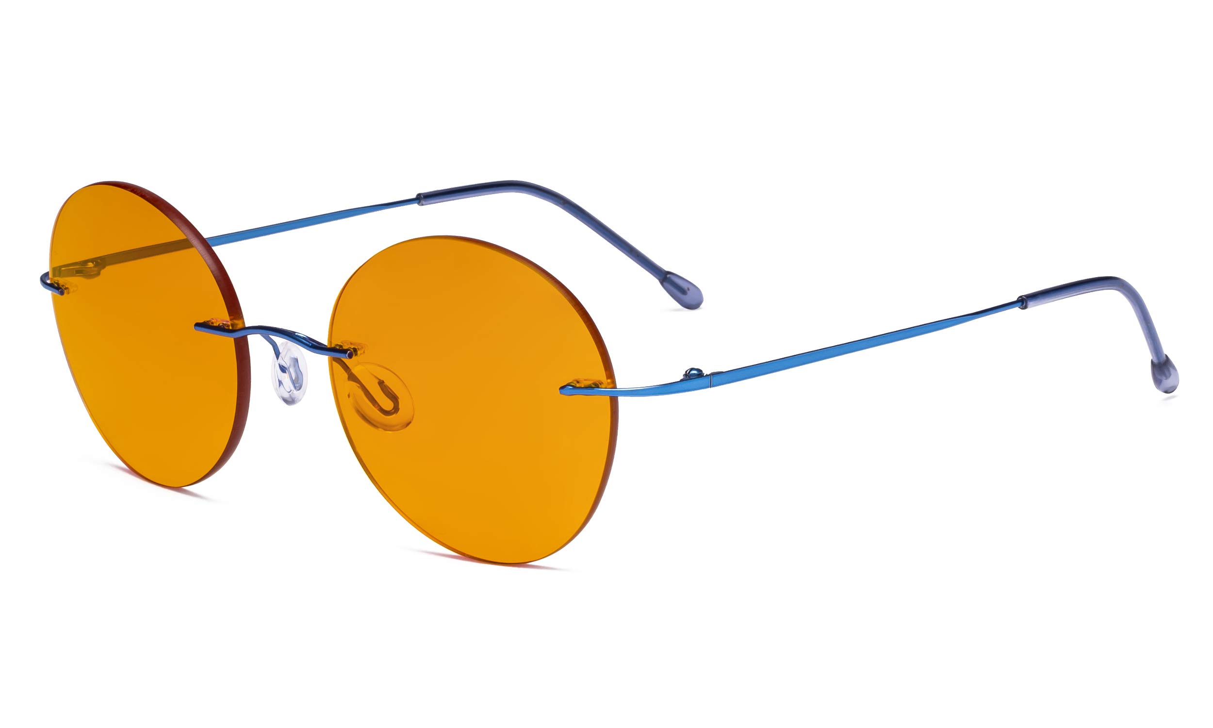Eyekepper Frameless Blue Light Blocking Glasses with Orange Tinted Lens for Sleeping - Round Rimless Computer Eyeglasses Men Women Blue +0.00 Blue-bb98 Lens