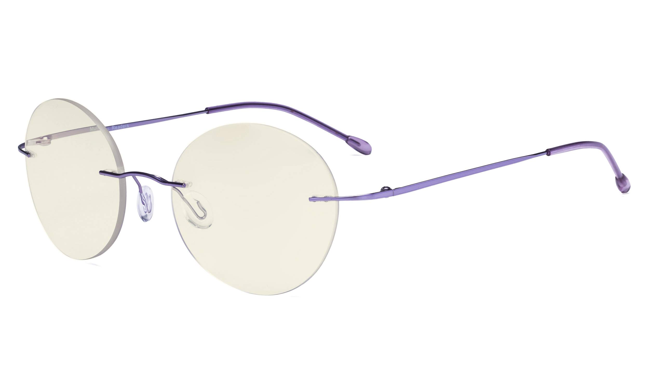 Eyekepper Frameless Progressive Glasses Multifocus Readers Blue light Filter Round Retro Reading Eyeglasses Men Women Purple +3.00 +3.00 Purple