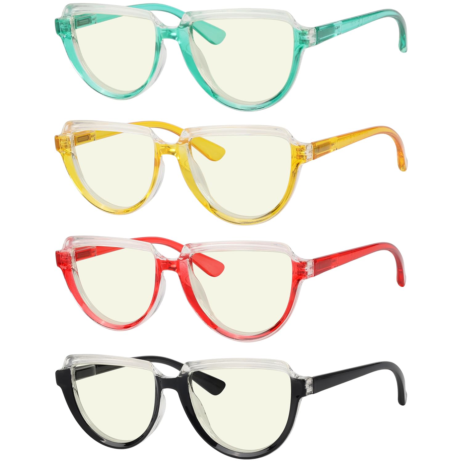 ?Worry-free Shopping - 100% risk free to try any broken problem happens, just contact the seller Eyekepper without any hesitation to solve the problem until you are satisfied. You have no risk to try our computer readers. ?Multipack Blue Light Blocking Glasses - You can choose different colors to match your clothing and mood. Sufficient quantity to allow you to place a pair of computer specs wherever you want. ?Spring Hinges Readers Eyeglasses - ultra-light and flexible resin frame material for durability and comfortable long-term wearing. Casual frame design keeps you looking cute and stylish while working or playing video games. ?Blue Light Filter Lenses - These cheaters can reduce eyestrain, anti blue rays to a great extent. Enjoy your digital time. No worries about eye fatigue, blurred vision, or headaches by using our magnifying glasses. ?Anti Blue Light Reading Glasses - Blue light blocker and UV400 lenses, alleviates visual fatigue and discomfort from browsing mobile phones, tablets, gaming and working under fluorescent lights with UVA and UVB protection and glare reduction.