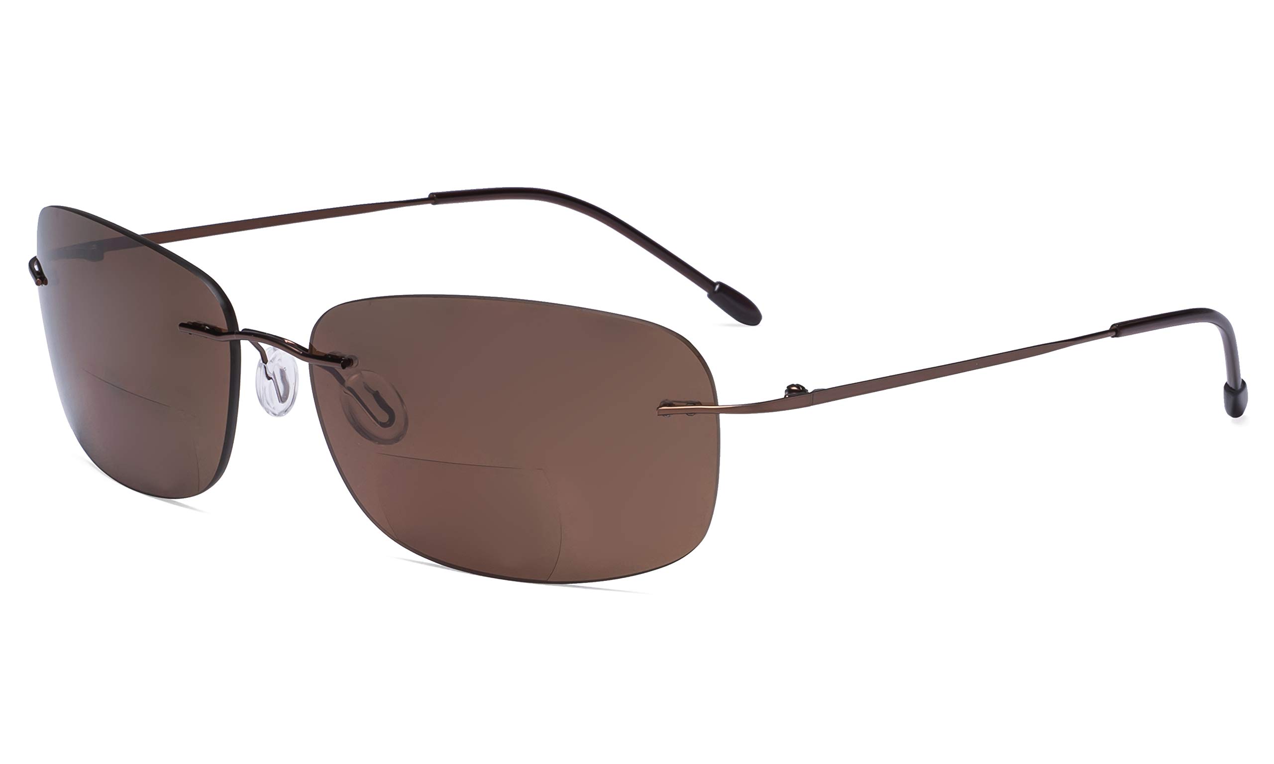 Eyekepper Rimless Bifocal Sunglasses Women Men Lightweight Bifocal Readers for Reading under the Sun - Brown/Brown lens +1.00 Brown/Brown Lens 1.0 x