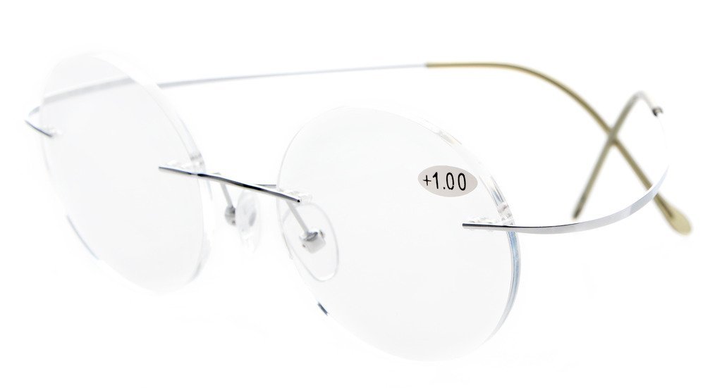 Eyekepper Titanium Rimless Round Reading Glasses Circle Reader Silver +2.00
