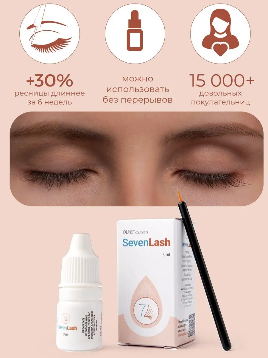 Сыворотка SevenLash (СевенЛаш) - эффективное средство для роста натуральных ресниц и бровей. Формат выпуска: флакон 3 мл с кисточкой-аппликатором. Активное действующее вещество средства для роста ресниц СевенЛаш воздействует на волосяные луковицы ресниц и бровей, питая и укрепляя их. Спустя 2-4 недели применения ваши ресницы станут длиннее, объемнее, темнее и крепче. Для достижения желаемой формы используйте средство для роста бровей и ресниц Seven Lash ежедневно в течение 3 месяцев.