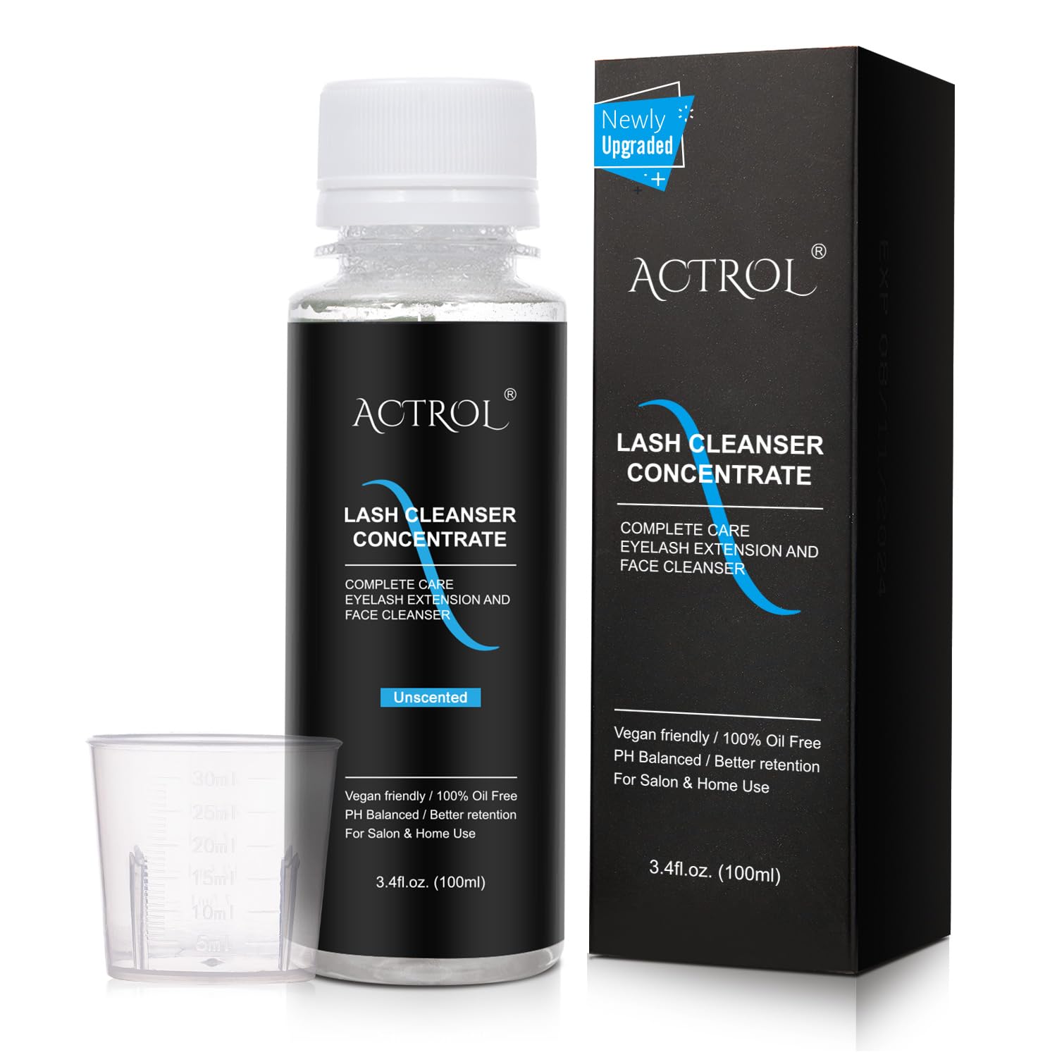 Eyelash Cleanser Concentrate Unscented 100ml Professional Lash Extensions Shampoo Natural Foaming Cleanser DIY Paraben & Sulfate Free Non-lrritating Wash for Extensions Lashes with Salon Home Care-Makes 60ml Bottles Eyelash Shampoo Unscented 1 count (Pack