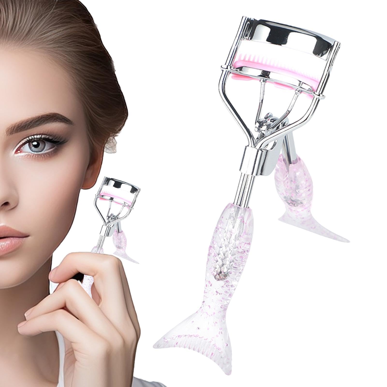 Eyelash Curler Eyelash Curler for Girls Fish Tail Eye Curler with Comb Teeth - Ergonomic Portable Makeup Supplies Beautiful Eyelash Tools for Girls F A4 Chrome With Pink Comb Pink Mermaid Hand