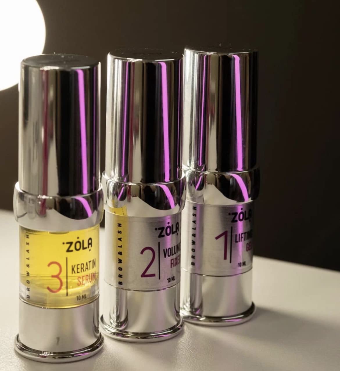 Kit includes: Lifting Gel — Keratin — softens the hair cuticle and lifts the scales for effective penetration of active ingredients. Volume Fixer — Restores disulfide bonds, fixes the curl, and closes the hair scales. Keratin Serum is a professional product designed for the care of eyelashes and eyebrows immediately after lamination treatment.