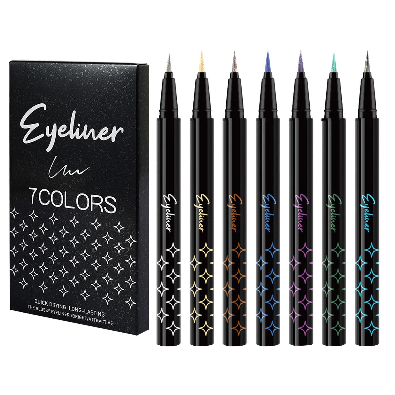 This glitter eyeliner set gives you a sparkling eye makeup that makes your eyes shine from corners. Perfect for Valentine's Day or a casual salon, this set will give you the sparkling, electric look you want. Net content: 7 x 0.8 ml. List: 7 x liquid eyeline SAFETY WARNING Not applicable?Perfect Gift: Add charm to your eyes with our glitter eye pen. Perfect for eye-catching dinners and occasions. Impress your loved ones with this beautiful gift for birthdays, weddings, Christmas, Thanksgiving and Valentine's Day. ?Versatile Use: Turn every meeting into a dazzling affair with this widely used glitter eyeliner pen, perfect for leisure or salon styling and is a Halloween hit. ?Distinctive Appearance: With unique colors full of pearl and color elements, this glitter eyeliner creates a sparkling effect that catches light from every angle and sets you apart from the crowd. ?Effortless use: For a radiant eye makeup look, apply effortlessly no glue required, just apply directly to the eyelid for an instant glow, you've earned it. ?Sparkle with every blink: Enhance your look with our glittering eyeliner pen. It is designed to make your eyes bigger and brighter and to impress with radiant eyes.Eyelinerstiftenset, kleurrijke eyelinerstiftenset, levendige eyelinerstiftenset, 7-delige wenkbrauwstift, sterk gepigmenteerde en duurzame kleurrijke eyeliner, glinsterende, waterbestendige Deze glitter-oogstiftset geeft je een fonkelende oogmake-up die je ogen vanuit hoeken laat stralen. Deze set is perfect voor Valentijnsdag of een vrijetijdssalon en geeft je de fonkelende, elektrische look die je wilt. Netto inhoud: 7 x 0,8 ml. Lijst: 7 x vloeibare eyeline VEILIGHEIDSWAARSCHUWING Niet van toepassing?Perfect cadeau: voeg charme toe aan je ogen met onze glitteroogpen. Perfect voor opvallende diners en gelegenheden. Maak indruk op je dierbaren met dit prachtige cadeau voor verjaardagen, bruiloften, Kerstmis, Thanksgiving en Valentijnsdag. ?Veelzijdig gebruik: verander elke ontmoeting in een oogverblindende aangelegenheid met deze wijdverbreide glinsterende eyelinerpen, perfect voor styling in je vrije tijd of in de salon en een Halloween-hit is. ?Opvallende uitstraling: met unieke kleuren vol parelmoer en kleurelementen creëert deze glitter-oogstift een sprankelend effect dat licht vanuit elke hoek vangt en je van de massa benadrukt. ?Moeiteloos gebruik: voor een stralende oogmake-up look moeiteloos aanbrengen geen lijm nodig, gewoon direct op het ooglid aanbrengen voor een onmiddellijke glans, je hebt het verdiend. ?Fonkelen met elke knipper: Verfraai je look met onze glinsterende eyelinerpen. Het is ontworpen om je ogen groter en stralender te maken en indruk te maken met stralende ogen.