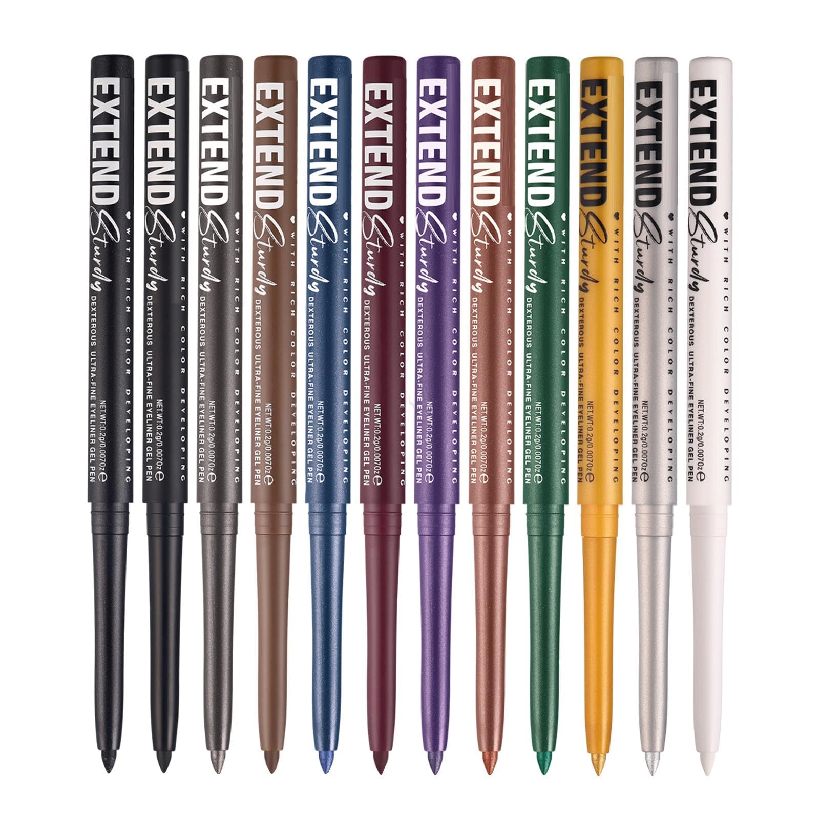 Eyeliner pencil - 12 colors - Smudge-resistant gel eyeliner - Long-lasting eye makeup kit - Rotating eye makeup accessory for women