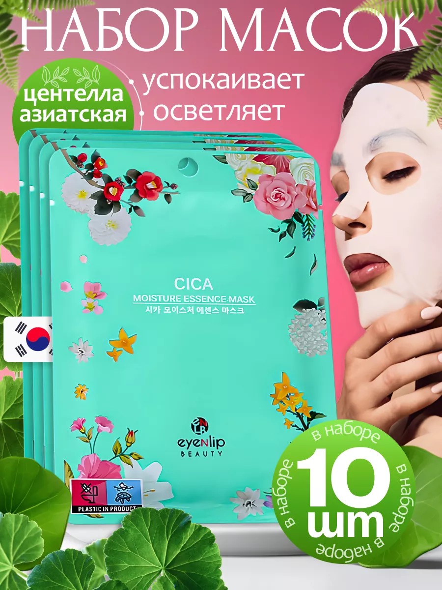 Корейский Набор масок для лица тканевые с экстрактом центеллы, 25 мл *10 шт // EYENLIP CICA MOISTURE ESSENCE MASK
