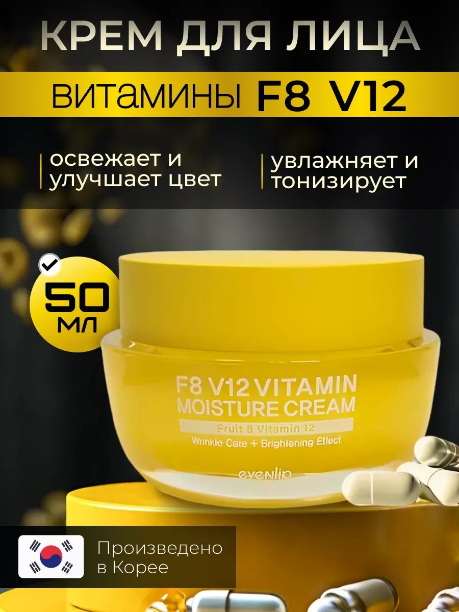 Vitamin moisturizing face cream EYENLIP F8 V12 Vitamin Moisture Cream contains 8 fruit extracts and 12 vitamins that help revitalize your skin.