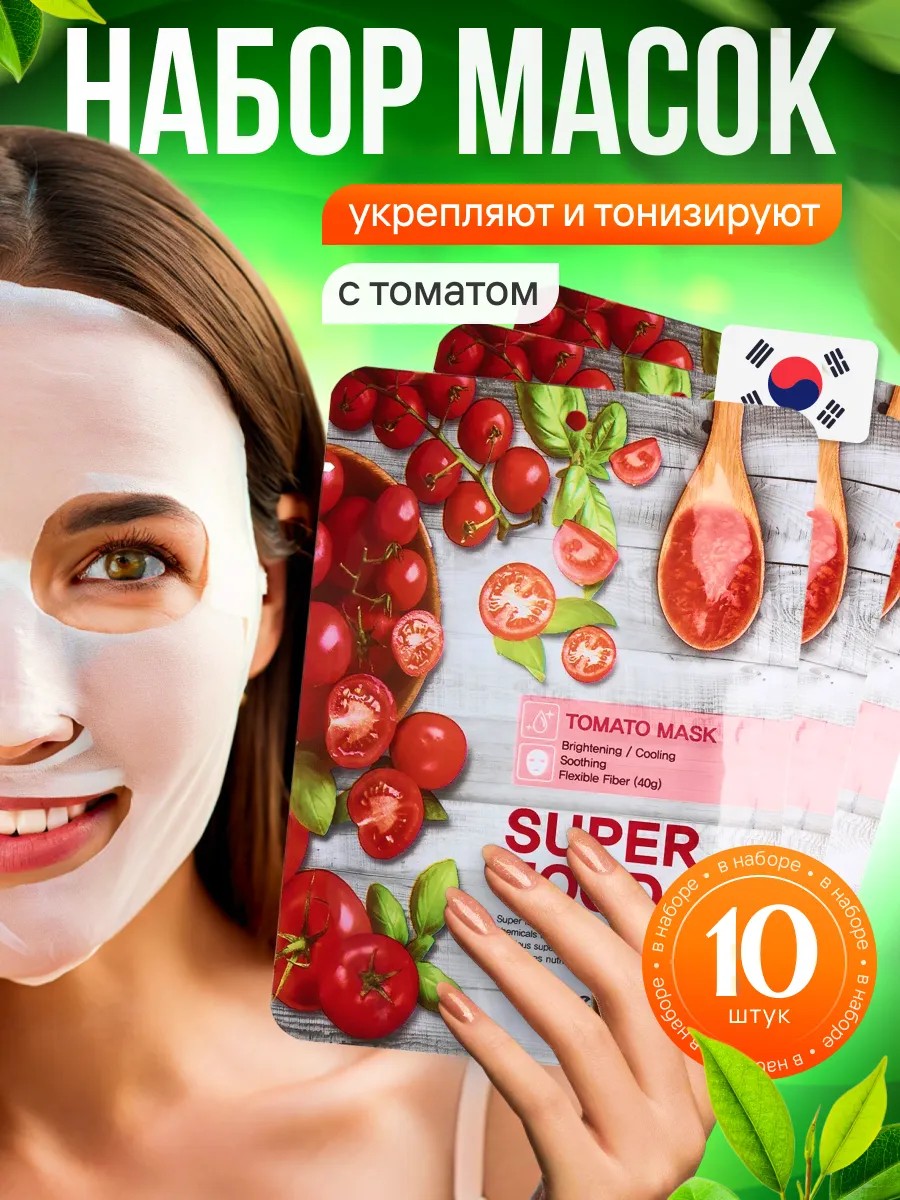 Корейский Набор масок для лица тканевые Eyenlip SUPERFOOD Mask Green Tea Корея с томатом