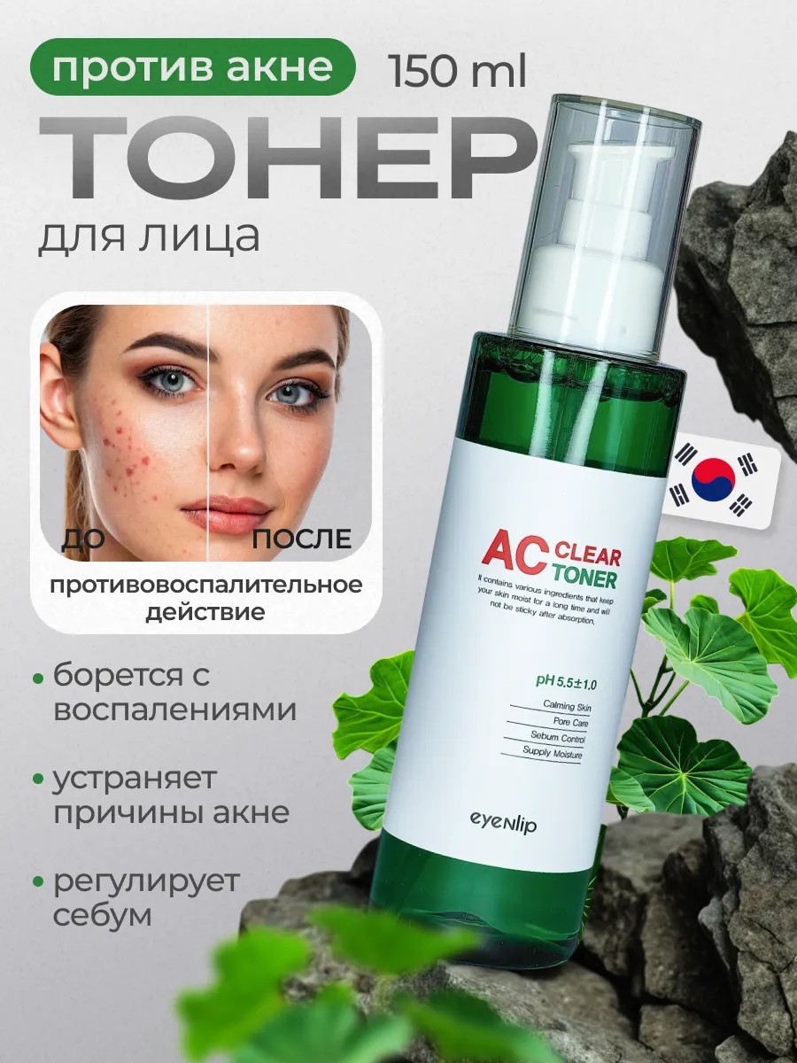 Eyenlip AC Clear Toner is a toner for problematic skin that has a beneficial effect on problematic and oily skin: it regulates sebum secretion, has an antibacterial and anti-inflammatory effect, fights skin inflammation, and eliminates the causes of acne.