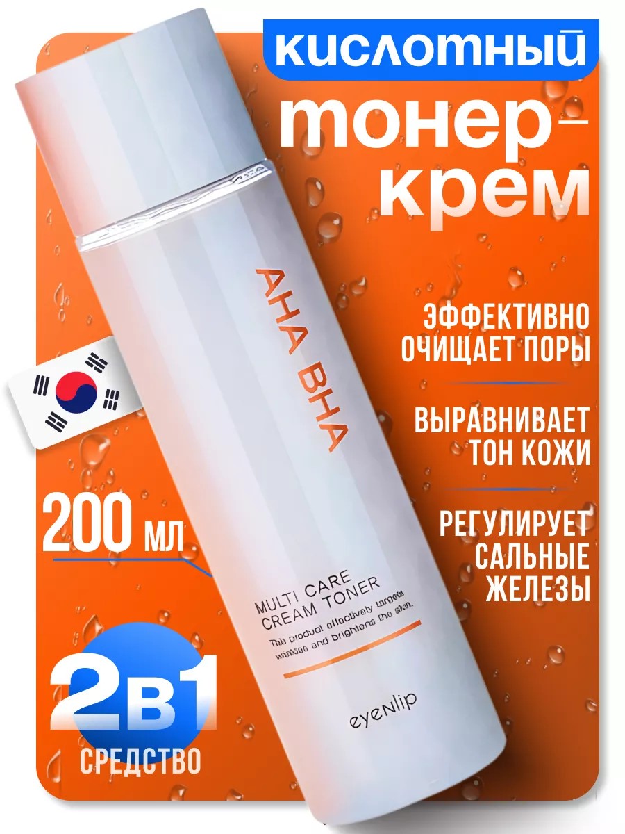 Крем-тоник EYENLIP AHA & BHA Multi Care Cream & Toner оказывает многофункциональное воздействие на кожу, особенно рекомендуется для комбинированной, жирной и проблемной.