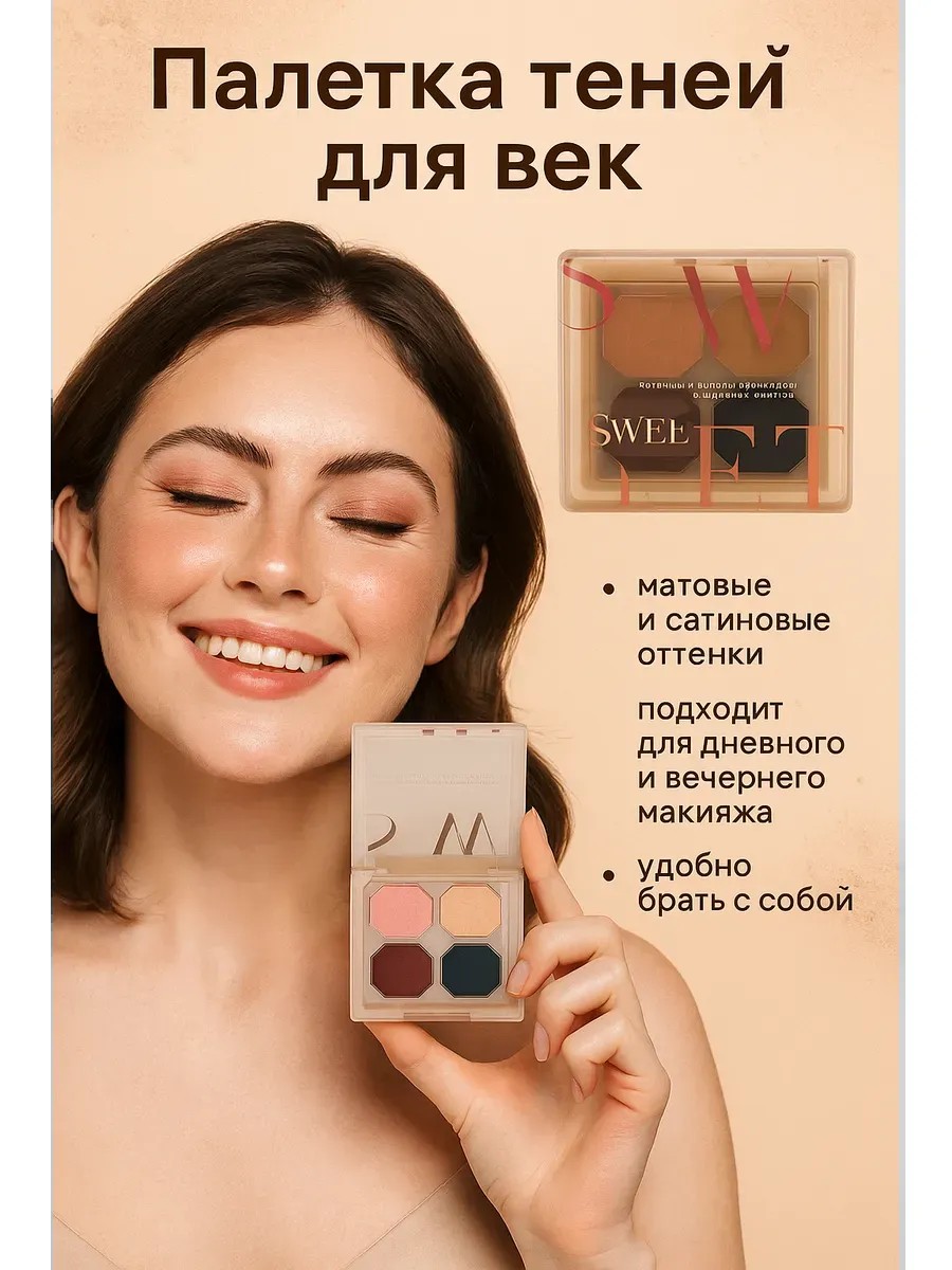 Ищете универсальную палетку теней, которая подчеркнёт ваш взгляд и подойдёт как для дневного, так и для вечернего макияжа? Представляем компактную палетку SEVENCOOL №4 с 4 тщательно подобранными оттенками – от нежного персикового до глубокого винного и благородного тёмно-синего.