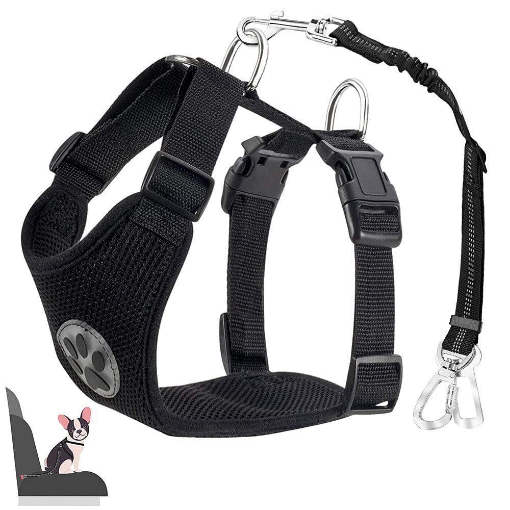 Several size optionsEvery dog is unique and we want to make sure everyone gets the perfect fit, please measure your dog before buying!Recommended breeds: Small to medium -sized breeds such as Yorkshire Terrier, Pomeranian, Papillion, Chihuahua, Toy Pudel, Klee Kai, Jack Russell and Bichon Frise.Perfectly tailored setBreathable mesh breast harness and 2-in-1 dog car safety belt work well together.You can effectively help keep your dogs safely on the spot, while dogs can move in a limited area, lie down and see from the window with the elastic and adjustable seat belt, which reduces the fear and barking of your dogs.Adjustable and easy to useYou don't have to ""get in"" to put on the vest, the two quick slaps on the chest part help with easy putting on and taking off.And the four adjustment buttons on the dishwear can be easily adjusted so that your fur friend feels comfortable.The dishes are adjustable (53-74cm) and easy to hang in the car or trunk.Breathable and comfortableMade from double-layered, durable but light mesh fabric, with the padded flannel edge, the vest offers the best wearing experience for our beloved fur friends.Large -scale tissue in the chest helps to relieve the pressure and avoid suffocation.2 In 1 design for universal applicationsOur 2-in-1 security belt has a deflectable tank-free carabiner that ensures universal compatibility with most vehicles.Hang it to the lock or headrest rod if the traditional seat belt is not compatible with the autoschnalle.Mehrere GrößenoptionenJeder Hund ist einzigartig, und wir wollen sicherstellen, dass jeder die perfekte Passform bekommt, so messen Sie bitte Ihren Hund vor dem Kauf! Empfohlene Rassen: Kleine bis mittlere Rassen wie Yorkshire Terrier, Pomeranian, Papillion, Chihuahua, Toy Pudel, Klee Kai, Jack Russell und Bichon Frise. Perfekt abgestimmtes SetAtmungsaktives Mesh-Brustgeschirr und 2-in-1-Hundeautosicherheitsgurt arbeiten gut zusammen. Sie können effektiv helfen, Ihre Hunde sicher an Ort und Stelle zu halten, während Hunde sich in einem begrenzten Bereich bewegen können, sich hinlegen und aus dem Fenster mit dem elastischen und verstellbaren Sicherheitsgurt sehen können, wodurch die Angst und das Bellen Ihrer Hunde reduziert werden. Einstellbar und einfach zu bedienenSie müssen nicht ""einsteigen"", um die Weste anzuziehen, die zwei Schnellverschlussschnallen auf dem Brustteil helfen beim einfachen An- und Ausziehen. Und die vier Verstellknöpfe auf dem Geschirrgurt können leicht eingestellt werden, damit sich Ihr Fellfreund wohl fühlt. Das Geschirr ist einstellbar (53-74cm) und leicht im Auto oder Kofferraum zu hängen. Atmungsaktiv und komfortabelHergestellt aus doppelschichtigem, strapazierfähigem, aber leichtem Mesh-Gewebe, mit dem gepolsterten Flanellrand, bietet die Weste die beste Trageerfahrung für unsere geliebten Fellfreunde. Großflächiges Gewebe in der Brust hilft, den Druck zu entlasten und das Ersticken zu vermeiden. 2 In 1 Design für universelle AnwendungenUnser 2-in-1-Sicherheitsgurt verfügt über einen verriegelbaren verhedderungsfreien Karabiner, der eine universelle Kompatibilität mit den meisten Fahrzeugen gewährleistet. Hängen Sie ihn an die Schloss- oder Kopfstützenstange, wenn der traditionelle Sicherheitsgurt nicht mit der Autoschnalle kompatibel ist.Eyein Hundegeschirr mit Sicherheitsgurt für Auto, 2 Karabinerhaken - verbunden mit Sicherheitsgurt-Schnalle, Kinder-Sicherheitssitz oder Trunk,verstellbare atmungsaktiv Geschirr (Schwarz, L) Schwarz L