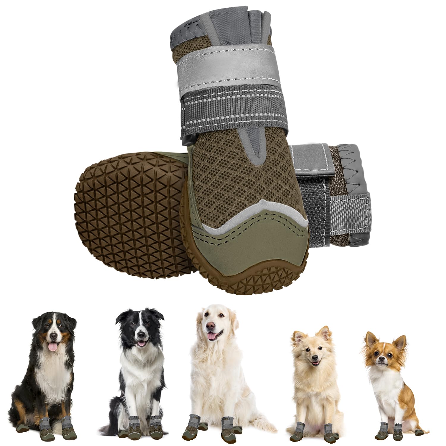 ?Multi scene application? This dog shoe is suitable for indoor and outdoor use.Interios helps dogs to run on hardwood floors and prevents dog paws from scratching floors and sofas.The light dog shoes are also ideal for hikes, travel and trekking tours, so that you don't have to worry that your dog's paws become dirty or injure.?Adjustable and secure? This paw protection dog shoe has a wide open seam and two adjustable Velcro fasteners, which can be set to the right size for your dog's leg size, which can easily be put on and pulled out.The reflective Velcro fastener improves visibility and helps your dog run safely at night.?Breathable and comfortable? three-layer mesh upper material, breathable and not stuffy.It is particularly well suited to protect the dog's paws from chewing and licking, which can lead to wounds not healing so easily.The dense mesh upper material also keeps dirt and deposits away and ensures that your dog's paws remain dry and comfortable.Very easy to clean.?Non -slip and hard -wearing sole? The non -slip design of the sole offers great stability and support for your dog.The soft rubber sole and the waterproof leather tip protect your dog's paws from sharp thorns, hot plasters and rough salt particles on snowy days.?Several size options? Our sizes are based on the inner diameter of the shoe, please make sure that you carefully measure the width of your dog's paws and then refer to the size table in the picture.You can choose the right size for your dog so that it feels comfortable.?Multi-Scene Anwendung?Dieser Hundeschuh ist für den Innen- und Außenbereich geeignet. In Innenräumen hilft es Hunden, problemlos auf Hartholzböden zu laufen und verhindert, dass Hundepfoten Böden und Sofas zerkratzen. Die leichten Hundeschuhe eignen sich auch hervorragend für Wanderungen, Reisen und Trekkingtouren, so dass Sie sich keine Sorgen machen müssen, dass die Pfoten Ihres Hundes schmutzig werden oder sich verletzen. ?Verstellbar und sicher?Dieser Pfotenschutz-Hundeschuh hat eine breite offene Naht und zwei verstellbare Klettverschlüsse, die auf die richtige Größe für den Beinumfang Ihres Hundes eingestellt werden können, wodurch er leicht an- und ausgezogen werden kann. Der reflektierende Klettverschluss verbessert die Sichtbarkeit und hilft Ihrem Hund, nachts sicher zu laufen. ?Atmungsaktiv und bequem?dreilagiges Mesh-Obermaterial, atmungsaktiv und nicht stickig. Es ist besonders gut geeignet, um die Pfoten des Hundes vor dem Kauen und Belecken zu schützen, was dazu führen kann, dass Wunden nicht so leicht heilen. Das dichte Mesh-Obermaterial hält außerdem Schmutz und Ablagerungen fern und sorgt dafür, dass die Pfoten Ihres Hundes trocken und komfortabel bleiben. Sehr leicht zu reinigen. ?Rutschfeste und strapazierfähige Sohle?Das rutschfeste Design der Sohle bietet große Stabilität und Halt für Ihren Hund. Die weiche Gummisohle und die wasserdichte Lederspitze schützen die Pfoten Ihres Hundes vor scharfen Dornen, heißem Pflaster und groben Salzpartikeln an verschneiten Tagen. ?Mehrere Größenoptionen? Unsere Größen basieren auf dem Innendurchmesser des Schuhs, bitte stellen Sie sicher, dass Sie die Breite der Pfoten Ihres Hundes sorgfältig messen und sich dann auf die Größentabelle im Bild beziehen. Sie können die richtige Größe für Ihren Hund wählen, damit er sich wohl fühlt.Eyein Hundeschuhe Pfotenschutz, 2 Stück atmungsaktiv Hundeschuhe mit Rutschfester Sohle und reflektierendem Klettverschluss für kleine, mittlere und große Hunde, Sport im Freien, Braun, Größe 3 Größe 3: Breite 4.7 cm D-Braun-atmungsaktiv (2 Stück)