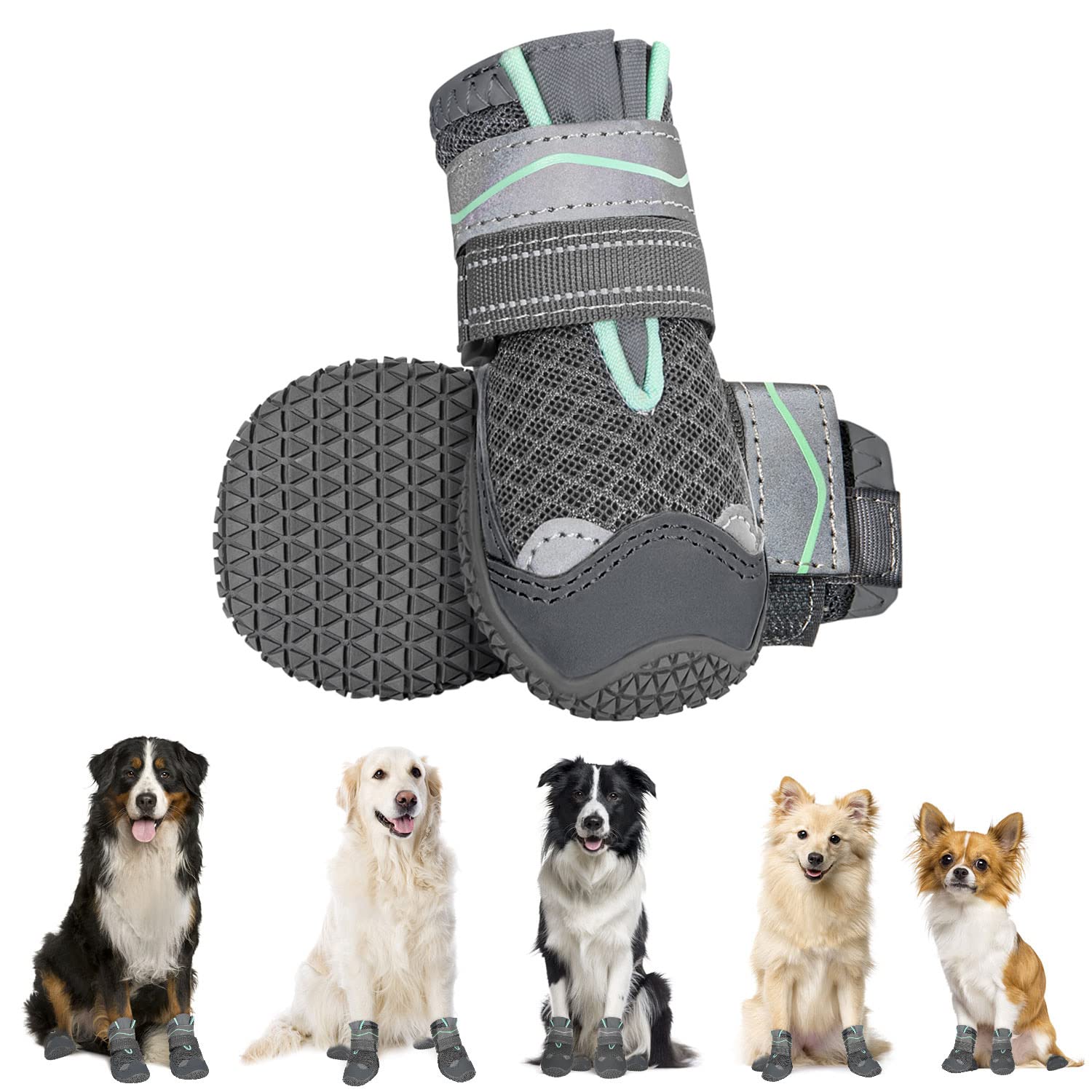 Well thought-out designEyein dog shoes are available in 2 and 4 packs.2 Series packs solve the problem of inconsistent quantities for front and back paws and facilitate the selection of the right size for front and back paws.Multi scene applicationThis dog shoe is suitable for indoor and outdoor use.Interios helps dogs to run on hardwood floors and prevents dog paws from scratching floors and sofas.The light dog shoes are also ideal for hikes, travel and trekking tours, so that you don't have to worry that your dog's paws become dirty or injure.Adjustable and secureThis paw protection dog shoe has a wide open seam and two adjustable Velcro fasteners, which can be set to the right size for your dog's leg size, which can easily be put on and pulled out.The reflective Velcro fastener improves visibility and helps your dog run safely at night.Breathable and comfortablethree-layer mesh upper material, breathable and not stuffy.It is particularly well suited to protect the dog's paws from chewing and licking, which can lead to wounds not healing so easily.The dense mesh upper material also keeps dirt and deposits away and ensures that your dog's paws remain dry and comfortable.Very easy to clean.Non -slip and hard -wearing soleThe non -slip design of the sole offers great stability and support for your dog.The soft rubber sole and the waterproof leather tip protect your dog's paws from sharp thorns, hot plasters and rough salt particles on snowy days.Several size optionsOur sizes are based on the inner diameter of the shoe, please make sure that you carefully measure the width of your dog's paws and then refer to the size table in the picture.You can choose the right size for your dog so that it feels comfortable.Durchdachtes DesignEyein Hundeschuhe sind in 2er- und 4er-Packungen erhältlich. 2er-Packungen lösen das Problem der uneinheitlichen Größen für Vorder- und Hinterpfoten und erleichtern die Auswahl der richtigen Größe für Vorder- und Hinterpfoten. Multi-Scene AnwendungDieser Hundeschuh ist für den Innen- und Außenbereich geeignet. In Innenräumen hilft es Hunden, problemlos auf Hartholzböden zu laufen und verhindert, dass Hundepfoten Böden und Sofas zerkratzen. Die leichten Hundeschuhe eignen sich auch hervorragend für Wanderungen, Reisen und Trekkingtouren, so dass Sie sich keine Sorgen machen müssen, dass die Pfoten Ihres Hundes schmutzig werden oder sich verletzen. Verstellbar und sicherDieser Pfotenschutz-Hundeschuh hat eine breite offene Naht und zwei verstellbare Klettverschlüsse, die auf die richtige Größe für den Beinumfang Ihres Hundes eingestellt werden können, wodurch er leicht an- und ausgezogen werden kann. Der reflektierende Klettverschluss verbessert die Sichtbarkeit und hilft Ihrem Hund, nachts sicher zu laufen. Atmungsaktiv und bequemdreilagiges Mesh-Obermaterial, atmungsaktiv und nicht stickig. Es ist besonders gut geeignet, um die Pfoten des Hundes vor dem Kauen und Belecken zu schützen, was dazu führen kann, dass Wunden nicht so leicht heilen. Das dichte Mesh-Obermaterial hält außerdem Schmutz und Ablagerungen fern und sorgt dafür, dass die Pfoten Ihres Hundes trocken und komfortabel bleiben. Sehr leicht zu reinigen. Rutschfeste und strapazierfähige SohleDas rutschfeste Design der Sohle bietet große Stabilität und Halt für Ihren Hund. Die weiche Gummisohle und die wasserdichte Lederspitze schützen die Pfoten Ihres Hundes vor scharfen Dornen, heißem Pflaster und groben Salzpartikeln an verschneiten Tagen. Mehrere GrößenoptionenUnsere Größen basieren auf dem Innendurchmesser des Schuhs, bitte stellen Sie sicher, dass Sie die Breite der Pfoten Ihres Hundes sorgfältig messen und sich dann auf die Größentabelle im Bild beziehen. Sie können die richtige Größe für Ihren Hund wählen, damit er sich wohl fühlt.Eyein Hundeschuhe Pfotenschutz, 2 Stück atmungsaktiv Hundeschuhe mit Rutschfester Sohle und reflektierendem Klettverschluss für kleine, mittlere und große Hunde, Sport im Freien, Dunkelgrau, Größe 0 Größe 0: Breite 3.7 cm E-Dunkelgrau-atmungsaktiv (2 Stück)