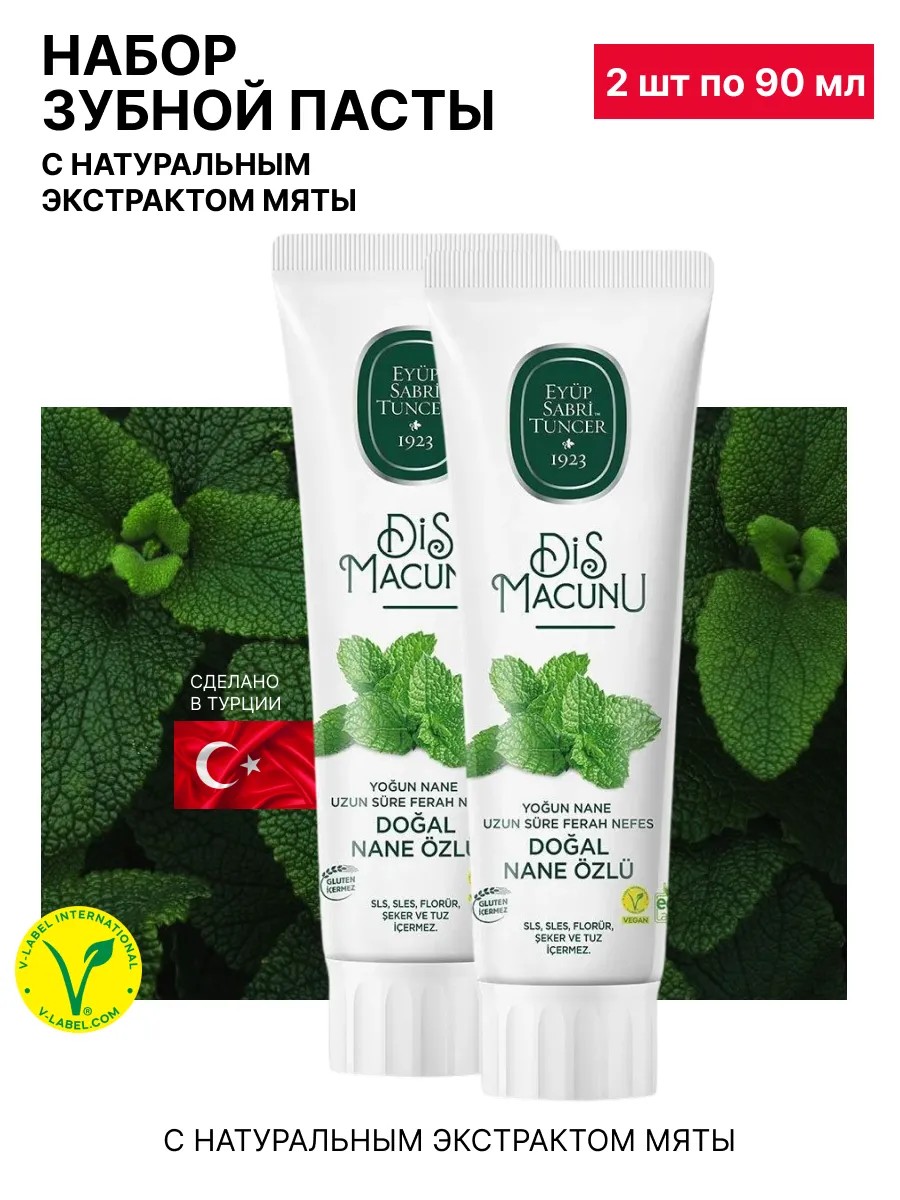 EYUP SABRI TUNCER зубная паста с экстрактом мяты 90 мл. - 2 шт обеспечивает интенсивный уход за полостью рта и свежее дыхание в течение дня. Благодаря натуральному экстракту мяты, паста поддерживает гигиену полости рта и зубов, предотвращая образование зубного налета, зубного камня и кариеса.