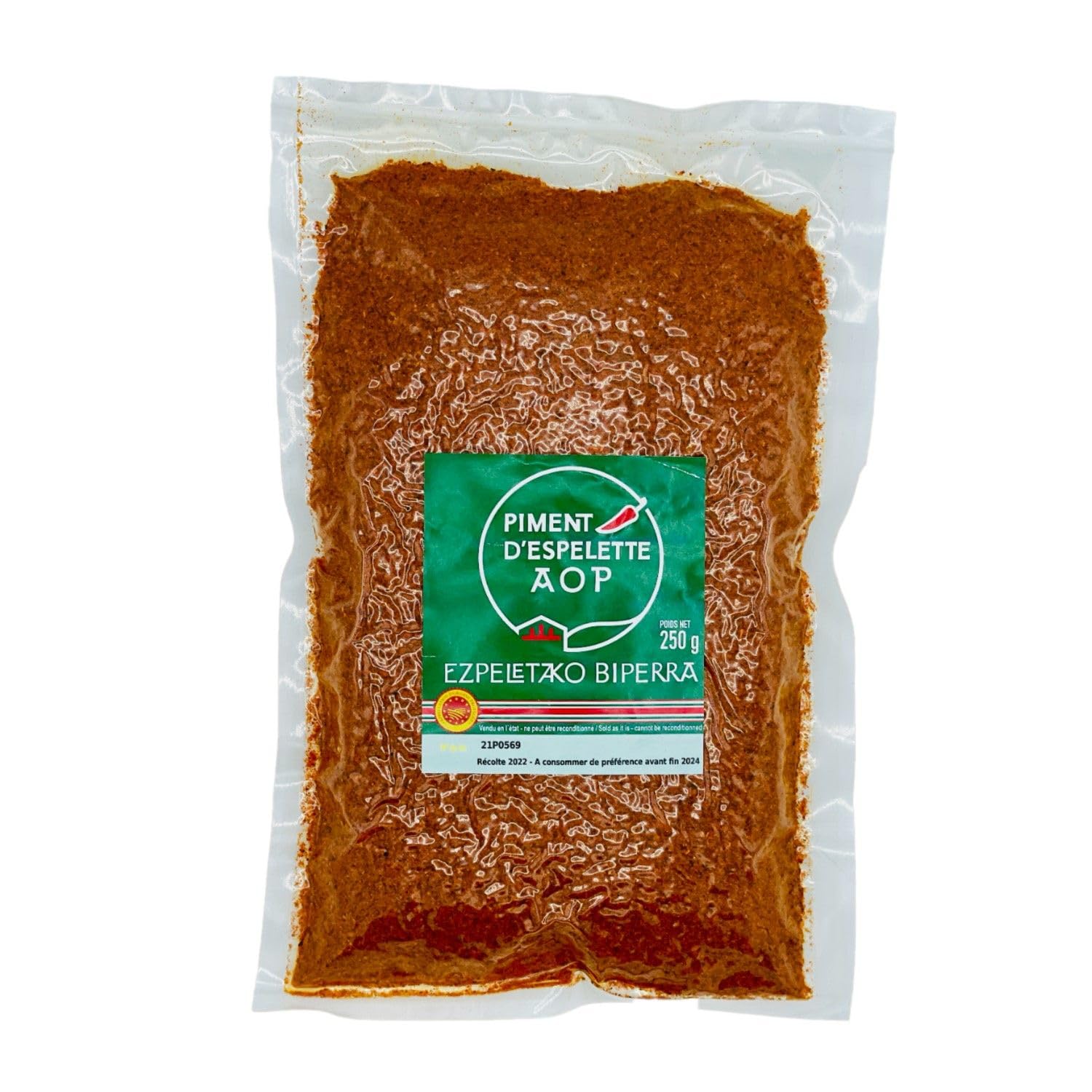 Espelette pepper is an iconic spice in Basque cuisine. This 250g bag of Espelette pepper powder, from the Ezpeletako biperra brand, is locally and artisanally produced, grown in the Nive Valley. Espelette pepper has a fruity and slightly spicy flavor, with notes of roasted bell pepper. This spice is used to enhance dishes, giving them a touch of typical Basque flavor. It can be used in a variety of dishes, such as meats, fish, vegetables, soups, and sauces. This bag of Espelette pepper is ideal for amateur and professional cooks looking to add a touch of originality and quality to their culinary creations. Ingredients: Espelette Pepper Allergens: None Storage Instructions: Store at room temperature, away from heat and humidity, before opening. Usage Tips: It's ideal for adding a spicy touch to dishes, especially Basque dishes like Basque chicken or Bayonne ham. Add it to your marinades, sauces, vinaigrettes, soups, or even desserts for a spicy kick. Product Information: Net Weight: 250g Origin: France Energy: 1423kJ 340kcal Fat: 11g, of which saturates 2g Carbohydrate: 28g, of which sugars 6g Protein: 14g Dietary Fiber: 0g Salt: 0g Packaging: Plastic Bag Full details are available on the product packaging. The information on this page is for guidance only. We encourage you to read the product label, especially regarding food allergies. INGREDIENTS Espelette Pepper SAFETY WARNING Full details are available on the product packaging. The information on this page is for guidance only. We encourage you to read the product label, especially regarding food allergies. See morePiment d'Espelette - Sachet 250gDESCRIPTION DU PRODUIT DESCRIPTION DU PRODUIT Le Piment d'Espelette est une épice emblématique de la cuisine basque. Ce sachet de 250g de piment en poudre, de la marque Ezpeletako biperra, est issu d'une production locale et artisanale, cultivé dans les terres de la vallée de la Nive. Le piment d'Espelette possède un goût fruité et légèrement épicé, avec des notes de poivron grillé. Cette épice est utilisée pour relever les plats en leur apportant une touche de saveur typiquement basque. Elle peut être utilisée dans une variété de plats, tels que les viandes, les poissons, les légumes, les soupes et les sauces. Ce sachet de piment d'Espelette est idéal pour les cuisiniers amateurs et professionnels qui cherchent à ajouter une touche d'originalité et de qualité à leurs préparations culinaires. Ingrédients : Piment Espelette Allergènes : Aucun Mode de conservation : A conserver à température ambiante, à l'abri de la chaleur et de l'humidité avant ouverture. Conseil d'utilisation : Il est idéal pour relever les plats, en particulier les plats basques comme le poulet basquaise ou le jambon de Bayonne. Ajoutez-le à vos marinades, sauces, vinaigrettes, soupes ou même vos desserts pour une touche épicée. Informations produit : Poids net : 250g Origine : France Energie : 1423KJ 340Kcal Lipides : 11g dont acides gras saturés 2g Glucides : 28g dont sucres 6g Protéines : 14g Fibres alimentaires : 0g Sel : 0g Emballage : Sachet en Plastique Détail complet et disponible sur l'emballage du produit. Les informations présentes sur cette page sont à titre indicatif. Nous vous invitons à prendre connaissance des informations sur l'étiquette du produit, en particulier concernant les allergies alimentaires. INGRÉDIENTS Piment Espelette AVERTISSEMENT DE SÉCURITÉ Détail complet et disponible sur l'emballage du produit. Les informations présentes sur cette page sont à titre indicatif. Nous vous invitons à prendre connaissance des informations sur l'étiquette du produit, en particulier concernant les allergies alimentaires. Voir plus