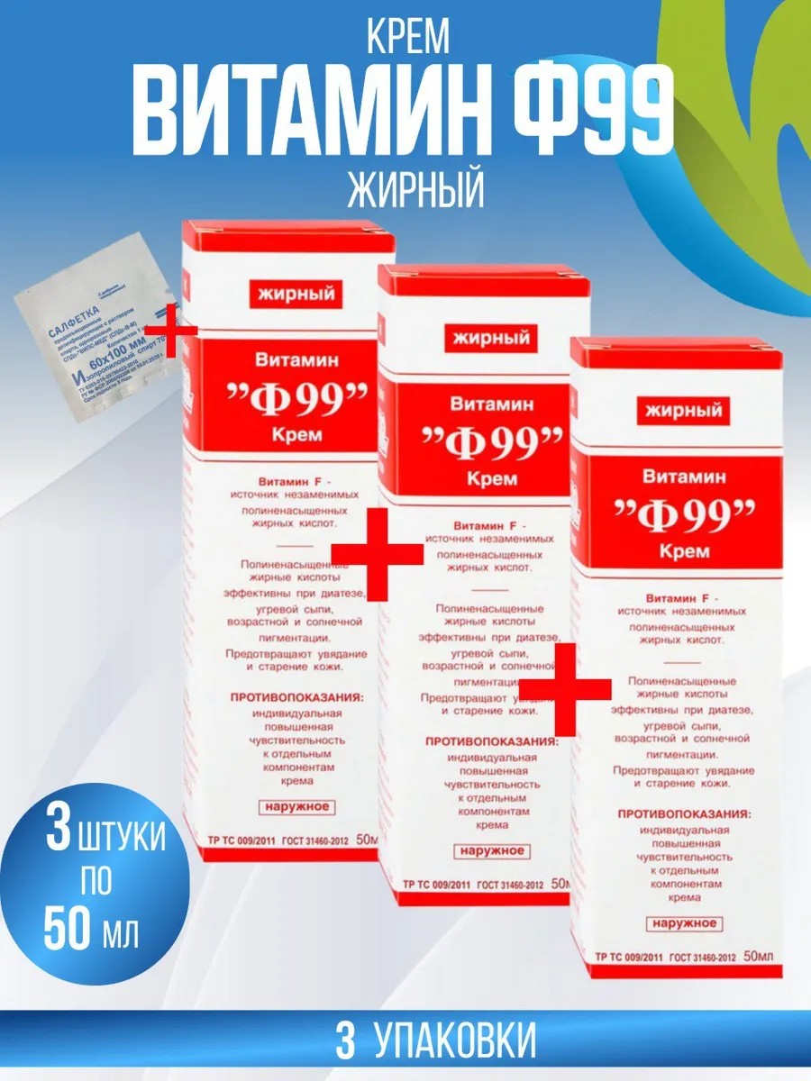 Ф 99 Крем Ф-99 Витамин полужирный, 3 упаковки по 50 гр+салфетка