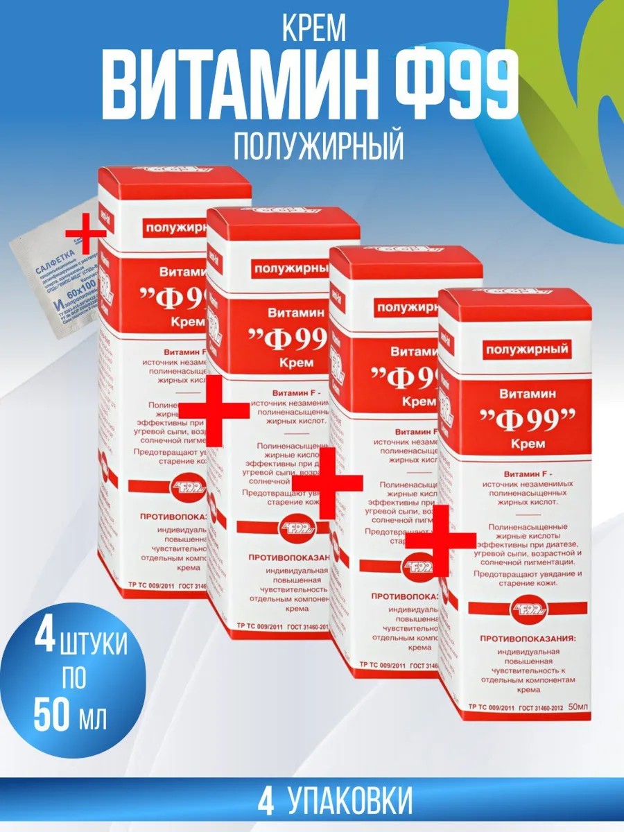 Ф 99 Крем Ф-99 Витамин полужирный, 4 упаковки по 50 гр, +салфетка
