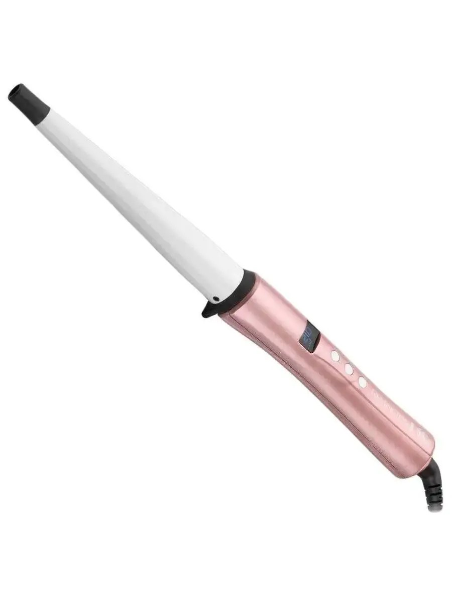 The Remington CI9525 conical curling iron is ideal for creating soft, spiral curls. The ceramic coating on the working surface distributes heat evenly across the 13–22 mm diameter barrel. Curls retain a healthy look, natural shine, and smoothness. The device is ready to use in just 30 seconds after being connected to a standard electrical outlet. The wide temperature range, ranging from 130 to 210°C, allows you to create curls on hair of any length and type: nine settings allow you to curl color-treated and fine strands, as well as thick, coarse, and unruly hair. The Remington CI9525 conical curling iron automatically deactivates after 60 minutes of use. The design features a cool-touch tip for comfort and safety during styling. A case and heat-resistant glove are included. The power cord is completely prevented from kinking or twisting, as it can rotate 360°. The curling iron consumes 42 watts of power. The power and readiness indicator, as well as the heating temperature, are displayed on the LCD display.