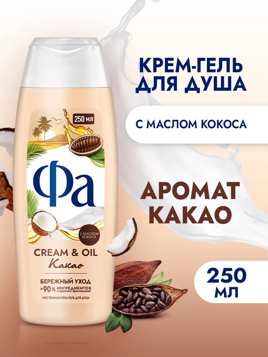 Насладитесь роскошью ухода с Фа Крем-гелем для душа Cream & Oil Какао и ощутите всю прелесть качественного очищения и питания кожи!
