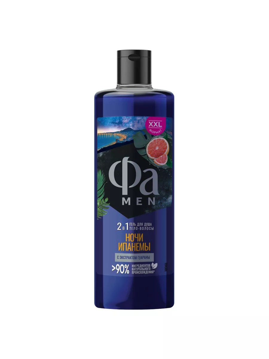 Мужской гель для душа эффективно очищает кожу и волосы, разработан специально для мужчин, защищает кожу от пересушивания. Гель для душа Фа мужской 2 в1 подходит для тела и волос. Содержит 100 % натуральный экстракт гуараны и более 94 % ингредиентов натурального происхождения. Веганский продукт, не содержит ингредиентов животного происхождения. Аромат геля душа «Ночи Ипанемы» — это свежий, тропический аромат с нотами тропических фруктов и зелени.