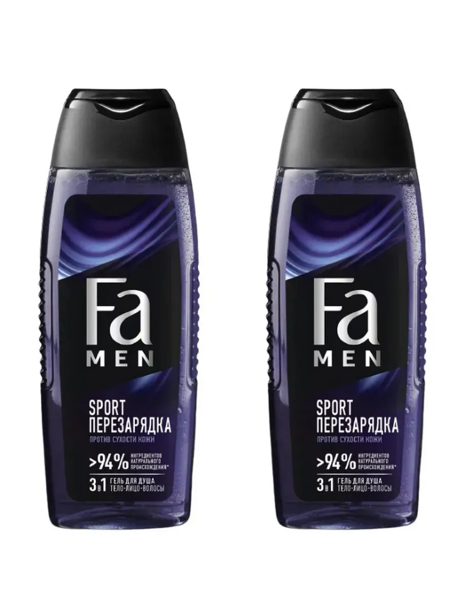 Fa, Гель для душа 3в1 мужской Sport Перезарядка, 250 мл., 2 шт. Сочетание активной формулы Геля для душа Fa men Sport перезарядка 3 в 1 для тела, волос и лица с бодрящими ароматами идеален для покорения новых вершин каждый день! Ощути длительную свежесть после занятий спортом! Сними напряжение с мыщц и насладись ароматом лимона и мускуса. Компоненты формулы 3 в 1 эффективно очищают и освежают твое тело, лицо и волосы, способствуют защите кожи от пересушивания. Мужской гель Фа не содержит минеральных масел, рН-нейтрален к коже, проверен дерматологически.