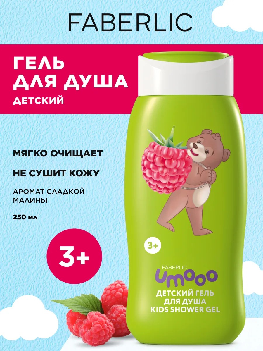 Umooo 3+ Children's Shower Gel "Raspberry Bear" 250 ml by Faberlic is a safe, hypoallergenic product for the sensitive skin of babies. Designed for use from age 3 and suitable for both boys and girls, the gel gently cleanses without drying out the skin, helping prevent irritation while maintaining its natural moisture level.