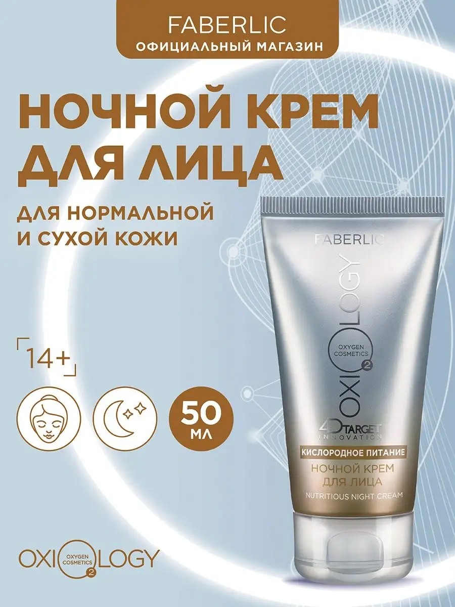 Faberlic / Night moisturizing face cream Oxygen nutrition OXIOLOGY, 50 ml Skin care. Night moisturizing face cream Oxygen nutrition of the Oxiology series from Faberlic. Face and skin care.