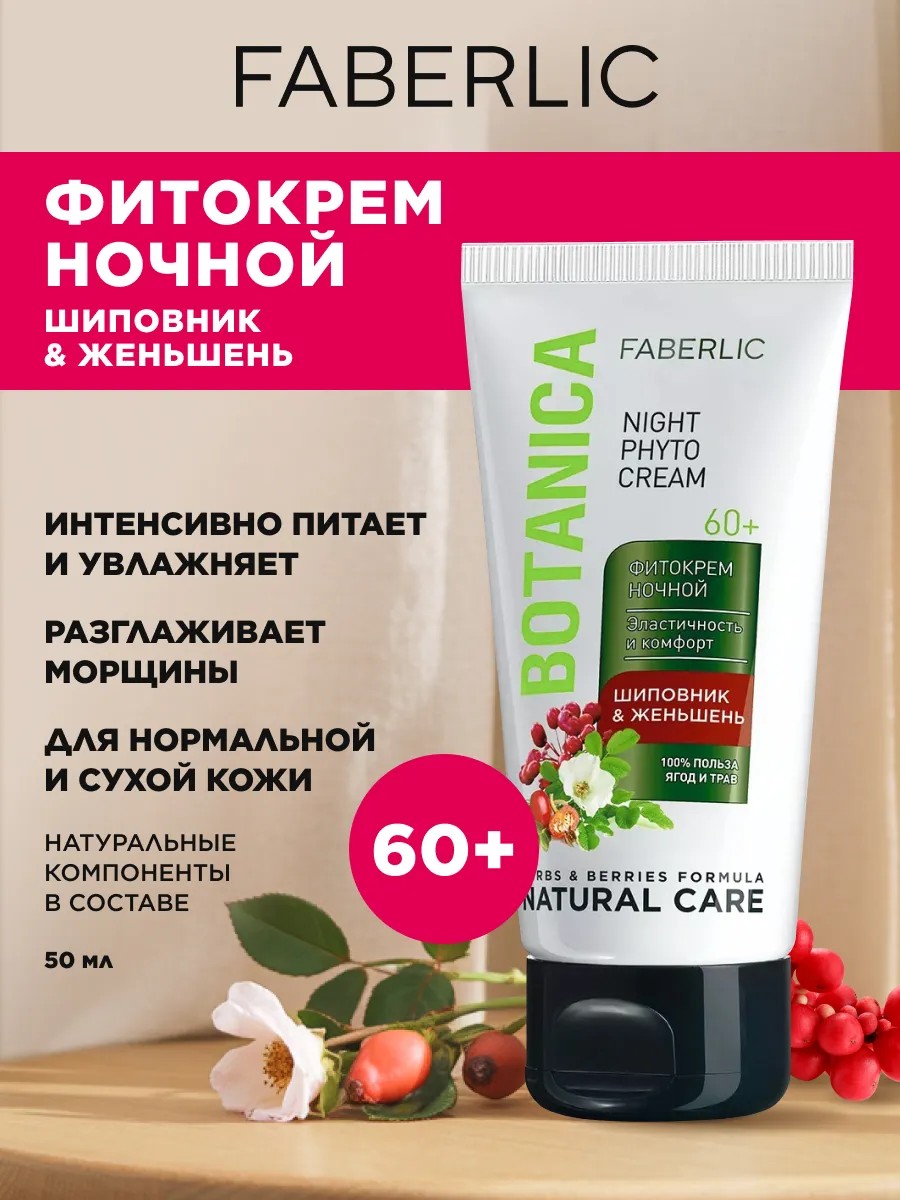 Крем для лица ночной Botanica 60+ с женьшенем и шиповником