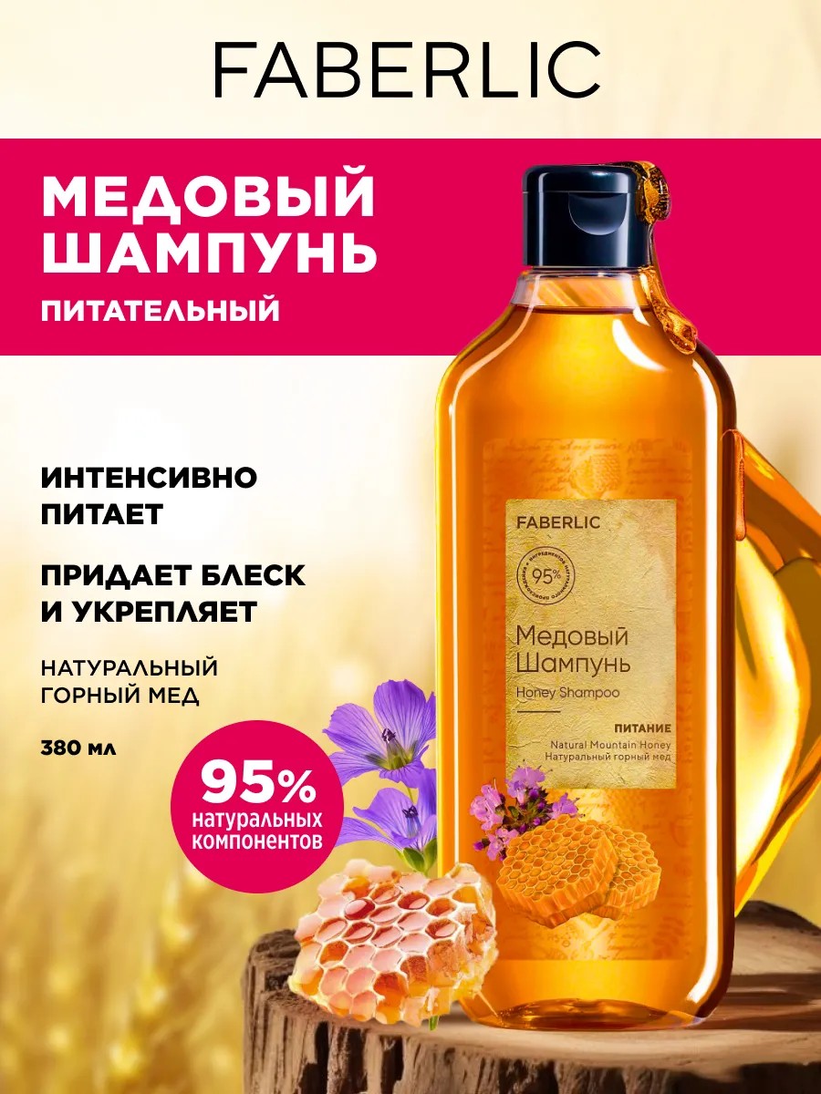 Faberlic's 380 ml Honey Shampoo "Nourishment" is a natural and organic hair care product formulated with natural ingredients.