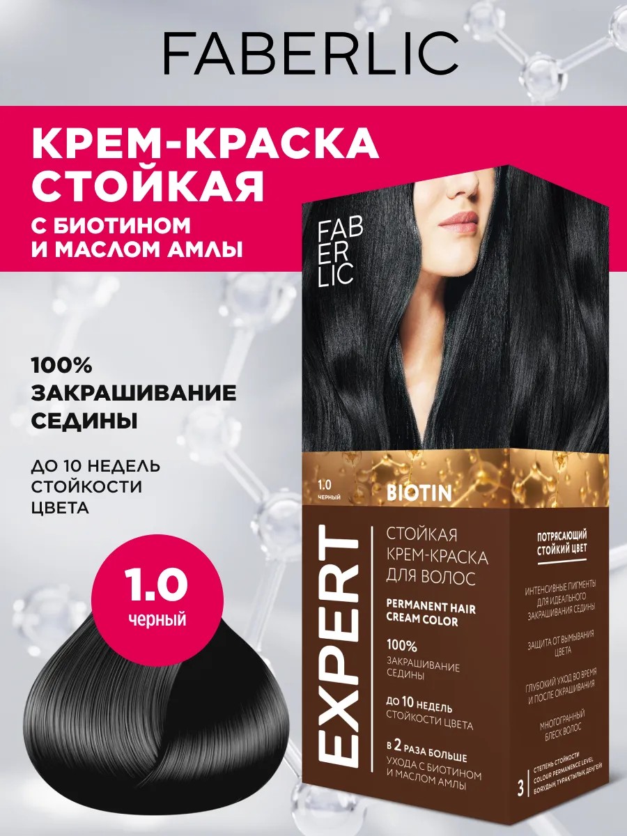 Крем-краска для волос EXPERT Permanent Hair Cream Color, тон 1.0 Чёрный, от Faberlic — профессиональное средство перманентного окрашивания, разработанное для женщин и мужчин, желающих получить стойкий насыщенный цвет, надёжное закрашивание седины и полноценный уход за волосами в домашних условиях. Благодаря мягкой аммиачной формуле и ухаживающему комплексу с кератином, биотином и кислородным флюидом, крем-краска не травмирует кутикулу волоса, а наоборот — регенерирует структуру, разглаживает пряди, придаёт им мягкость и притягательный блеск.