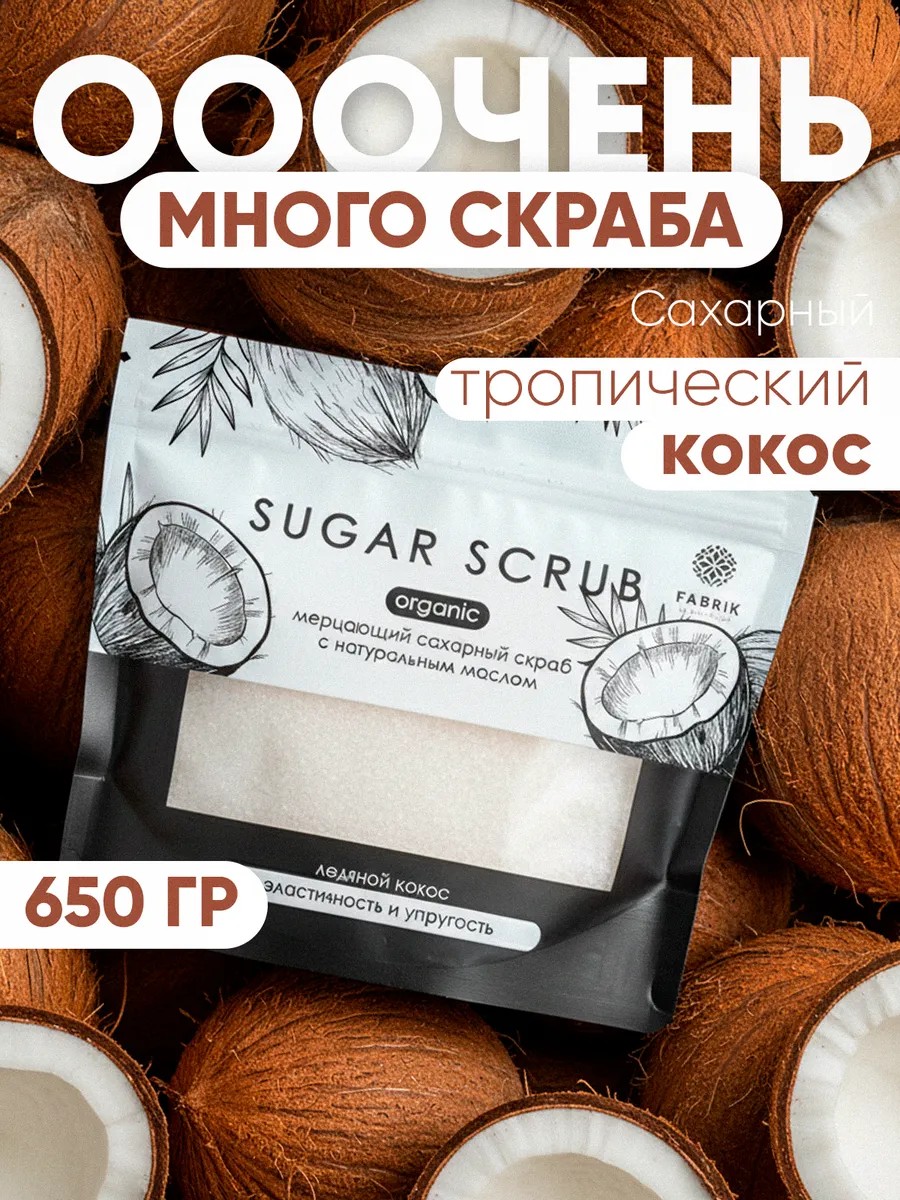 Сахарный скраб для тела с шиммером ""Ледяной кокос"" 650г FABRIK Cosmetology