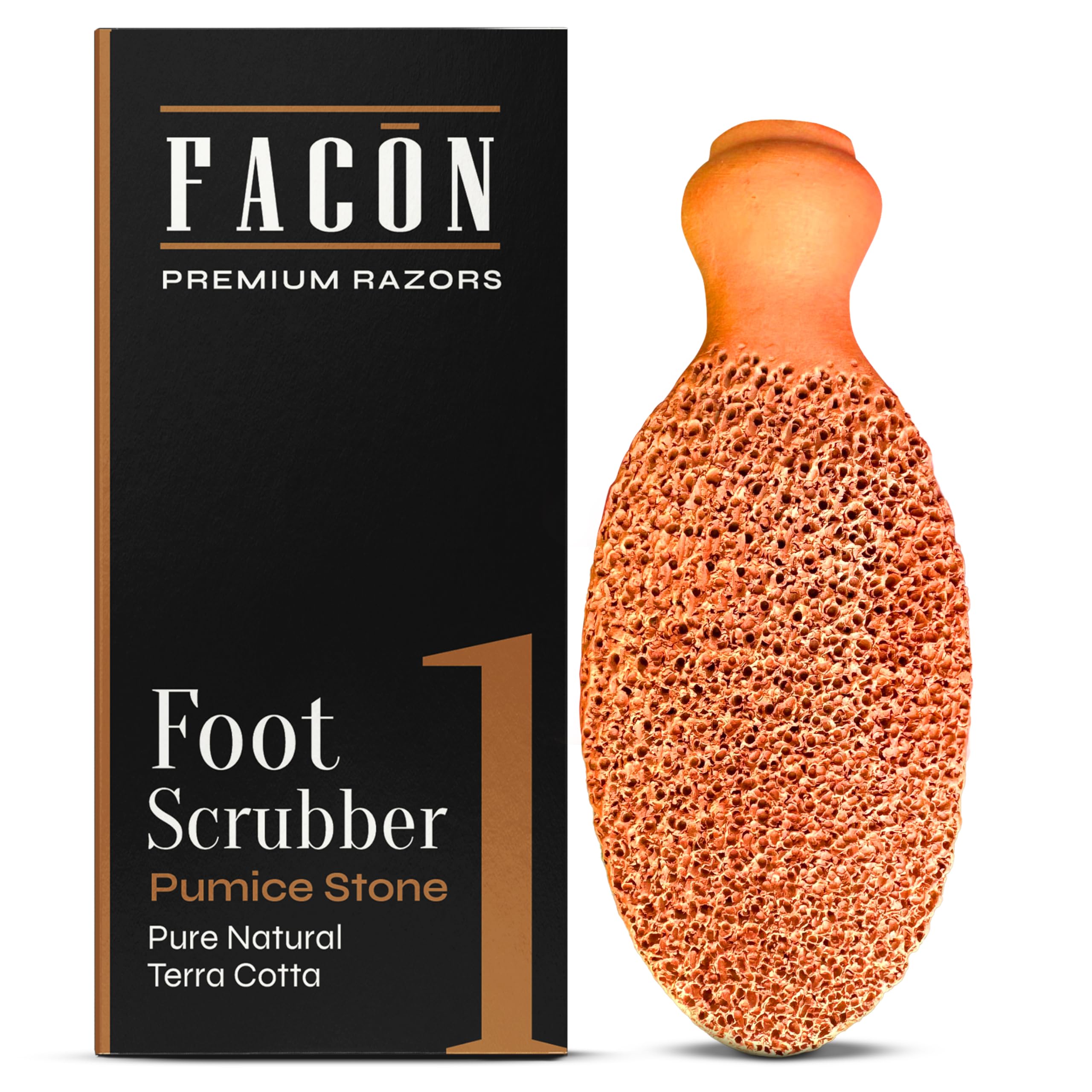 : Facón Exfoliating Pumice Stone for Feet, 2-Sided - 100 Pure Natural Terracotta. - Scrub side to remove dead skin, polishing side to smooth skin. - Repairs and rejuvenates cracked heels, leaving skin soft, smooth, and healthy. - Lightweight, ergonomic design, comfortable and sturdy grip. Use on wet feet for best results. Instructions: Wet feet, gently rub in circular motions to remove dead skin, then rinse.