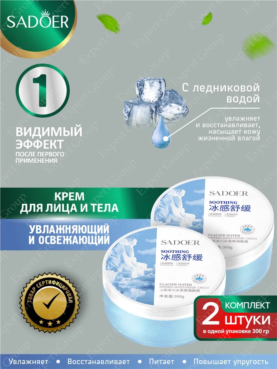Освежающий и увлажняющий крем для лица и тела Sadoer с ледниковой водой 300 гр, 2 шт — истинный подарок вашей коже. Этот крем, весом 300 грамм, разработан с учетом всех потребностей вашей дермы, предоставляя ей необходимую влагу и восстановление.