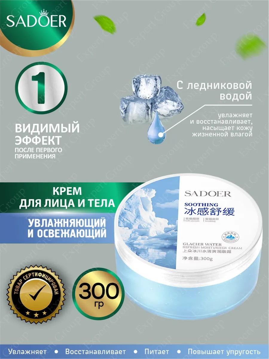 | Комплектация | Освежающий и увлажняющий крем для лица и тела Sadoer с ледниковой водой 300 гр |