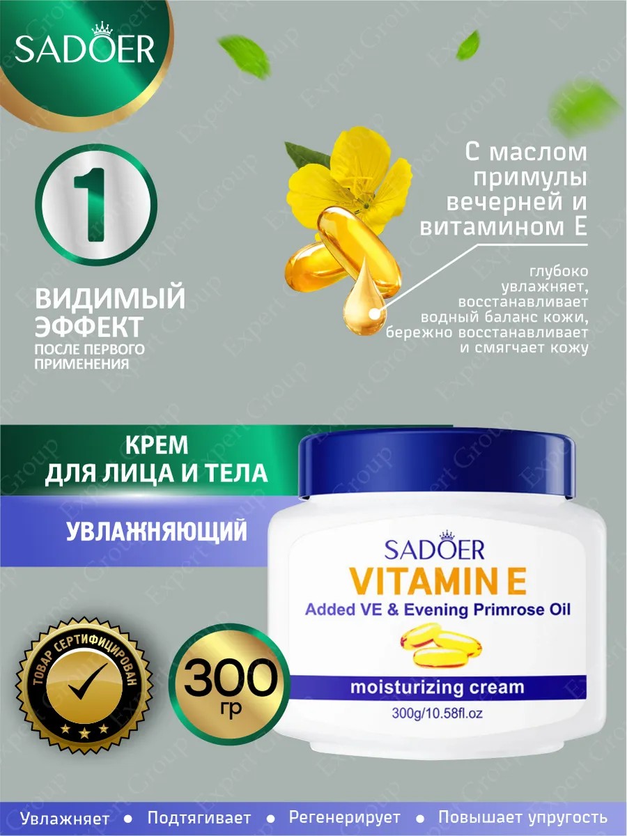 Sadoer Moisturizing Face and Body Cream with Vitamin E and Evening Primrose Oil, 300g. Sadoer Moisturizing Face and Body Cream with Vitamin E and Evening Primrose Oil is an ideal choice for all skin types.
