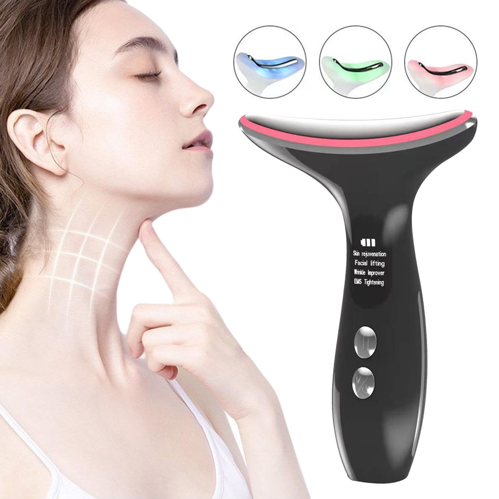A beauty tool that can be used on both the neck and face. It features color light rejuvenation, shrink pores, and 160 degrees around the neck for smooth and firm skin. It also has positive and negative ions to enhance the absorption of skin care products. Specifications: Name: EMS Face Neck Lifting Massager. Buckle: USB. Capacity: 450mAh. Size: 13.5 x 9.2 x 5cm. Package Included: 1 x Neck Beauty Instrument. 1 x Data Cable. 1 x ManualSkin Improvement: The facial sculpting device uses positive negative ions to transform the neck cream into nutrients that reach the skin and neck mask. This improves absorption efficiency and makes the skin more beautiful. Dolphin-Shaped Device: This facial sculpting device has a bionic design that resembles a dolphin and can adapt to the curves of the neck with a 160-degree angle, providing deep and gentle care for the neck skin. Shrinks Pores: This facial sculpting device can help you achieve a refined and flawless complexion. By promoting the production of collagen, rejuvenating the skin, accelerating blood circulation, and dredging the meridians. Healthy and Youthful Skin: This facial sculpting device combines color light rejuvenation and deep cleansing for multi-effect skin care. It also uses sonic vibration, nourishing introduction, 45 constant temperature hot compress, and positive and negative ions. Jade Neck Sculpt: This facial sculpting device can create a jade neck by diminishing wrinkles and fine lines. It can stimulate and revitalize the skin on your neck and face, making you more beautiful. It is easy to use and compatible with all skin types. Un outil de beauté qui peut être utilisé à la fois sur le cou et le visage. Il dispose d'un rajeunissement de la lumière colorée, des pores rétrécissent et à 160 degrés autour du cou pour une peau lisse et ferme. Il a également des ions positifs et négatifs pour améliorer l'absorption des produits de soins de la peau. Caractéristiques : Nom : masseur de levage EMS pour le visage et le cou. Boucle : USB. Capacité : 450 mAh. Dimensions : 13,5 x 9,2 x 5 cm. Contenu : 1 instrument de beauté du cou. 1 câble de données. 1 manuel (français non garanti)Amélioration de la peau : l'appareil de sculpture du visage utilise des ions négatifs positifs pour transformer la crème du cou en nutriments qui atteignent la peau et le masque du cou. Cela améliore l'efficacité d'absorption et rend la peau plus belle. Appareil en forme de dauphin : cet appareil de sculpture du visage a un design bionique qui ressemble à un dauphin et peut s'adapter aux courbes du cou avec un angle de 160 degrés, offrant un soin profond et doux à la peau du cou. Rétrécit les pores : cet appareil de sculpture du visage peut vous aider à obtenir un teint raffiné et impeccable. En favorisant la production de collagènes, en rajeunissant la peau, en accélérant la circulation sanguine et en draguant les méridiens. Peau saine et jeune : cet appareil de sculpture du visage combine un rajeunissement de la lumière des couleurs et un nettoyage en profondeur pour des soins de la peau multi-effets. Il utilise également des vibrations sonores, une introduction nourrissante, une compression chaude de 45 températures constantes et des ions positifs et négatifs. Sculpteur de cou en jade : cet appareil de sculpture du visage peut créer un cou de jade en diminuant les plis et les ridules. Il peut stimuler et revitaliser la peau de votre cou et de votre visage, vous rendant plus belle. Il est facile à utiliser et compatible avec tous les types de peau.