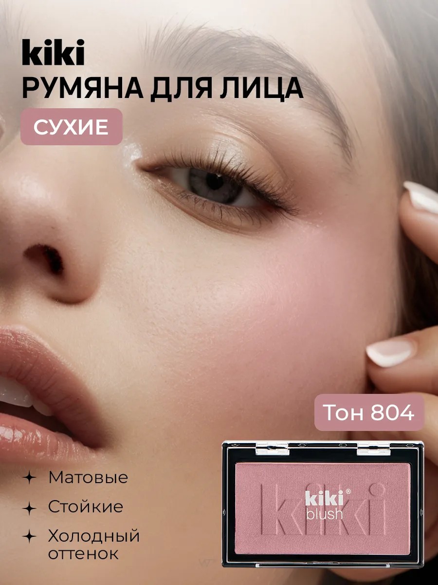Румяна для лица Kiki Blush тон 804 - это естественный оттенок утренней свежести, придающий лицу сияющий и отдохнувший вид. Матовые румяна для лица сочетают в себе насыщенный естественный цвет, легкость нанесения и стойкую структуру. Нежный светящийся румянец скроет следы усталости и подчеркнет изящную форму лица, станут важным этапом контуринга и скульптурирования овала лица. Продукт наносится ровным слоем, легко ложится на кожу и создает естественное покрытие, которое сохраняется на протяжении всего дня. Интенсивность цвета можно индивидуально варьировать от невесомого до интенсивного в зависимости от нанесенного количества. Сухие румяна от Кики разработаны таким образом, что могут прекрасно ложиться как на чистую кожу, так и в качестве финального штриха после нанесения полного макияжа. Для достижения качественного эффекта и красивой растушевки совсем не обязательно использовать кисть: сделать это можно даже пальцами. Розовые румяна для лица подойдут женщинам всех цветотипов. Компактные румяна удобно положить даже в небольшую сумочку, чтобы освежить образ в течение дня. Женская декоративная косметика Kiki – ваш незаменимый помощник для создания уникального стиля и образа! Нежные оттенки в линейке бренда подойдут для девочек и подростков. Отличный подарок для ваших любимых девушек и женщин, сестры, дочки, мамы и подруги, на день рождения и другие праздники. Презент на День матери, День учителя, День воспитателя.