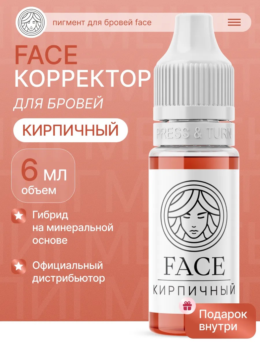 Пигмент-корректор для перманентного макияжа Кирпичный FACE — профессиональный инструмент, который сделает ваши брови идеальными. Его состав имеет минеральную основу и сбалансированный набор компонентов, поэтому он долго носится на коже и не требует добавления корректоров.